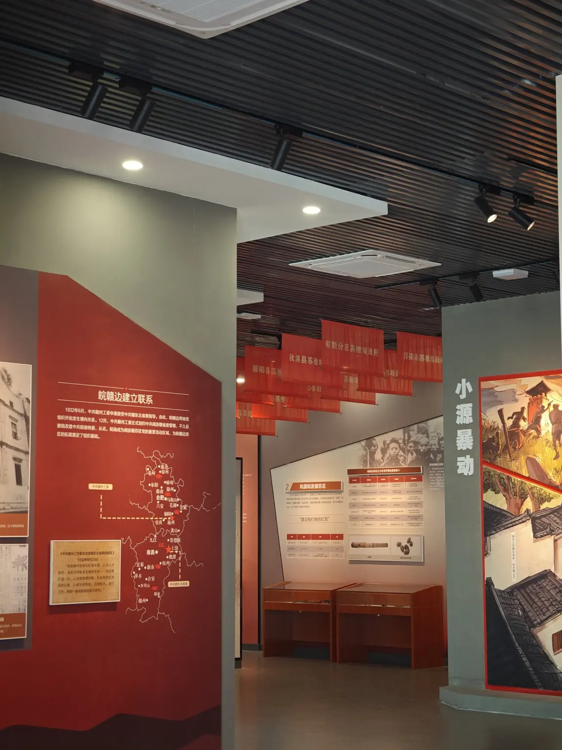 我们还来到皖赣边苏区斗争史陈列馆,详细了解了当时苏区的建立过程,和在此开展的革命故事,同时还通过AIAR的形式穿越回当时的抗战年代。