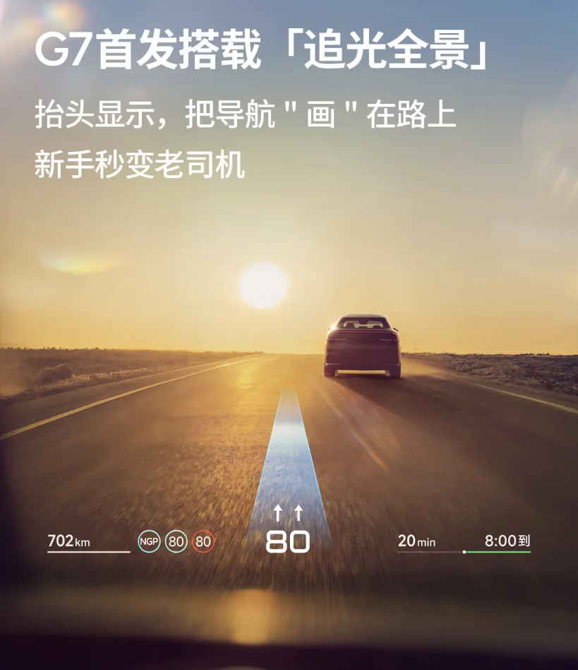 G7作为一款定位AI智能家庭SUV的新车,不仅拥有出色的空间表现和续航能力,更在智能化方面亮点纷呈。让我最心动的三方面:AR-HUD抬头显示、图灵AI芯片超强算力、智驾小蓝灯设计。