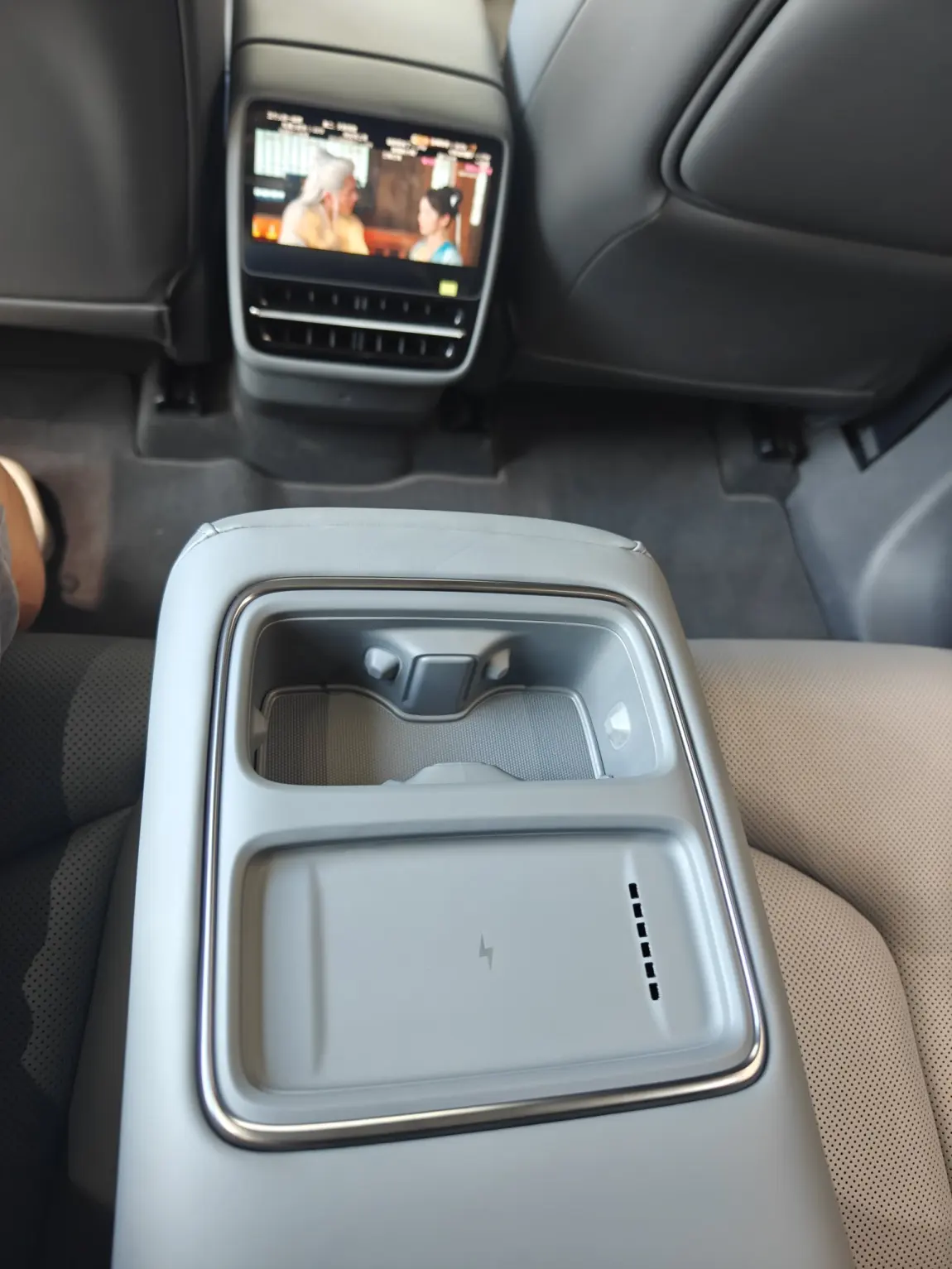 其次呢,它的很多贴心设计让我很满意,毕竟我是很喜欢SUV并且需要家用的人:G7的干湿分离的前备箱、语音控制的扶手箱,后排8英寸的屏幕,扶手箱还有无线充电、超大的后排空间,无一不让我为其喜爱!