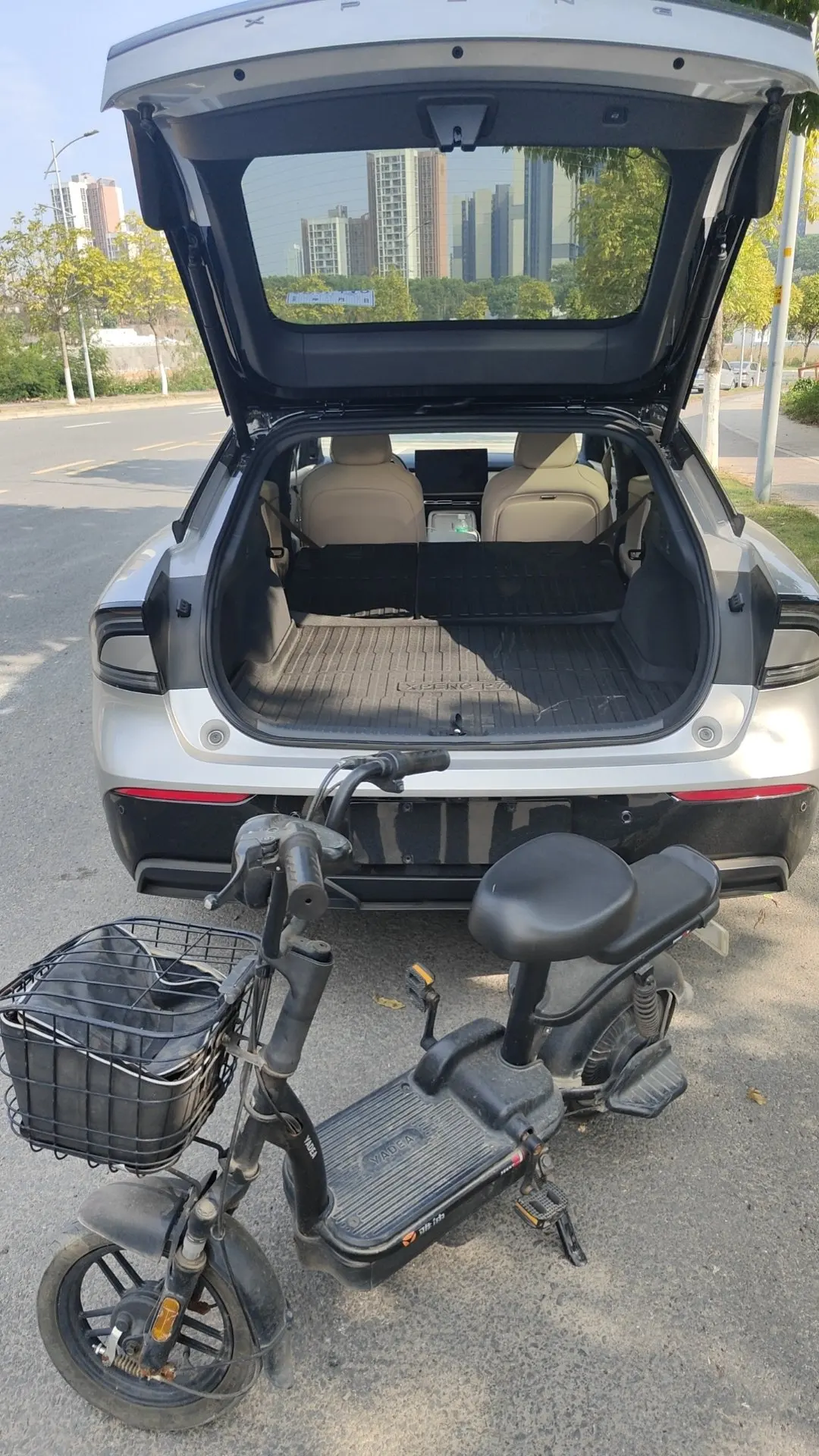 同事换了个工地,把她心爱的小电驴转给我老婆了,原本还在想怎么运回去,毕竟有90km,这不刚好换了个新能源p7+,这正好,新能源拉新能源,省事。