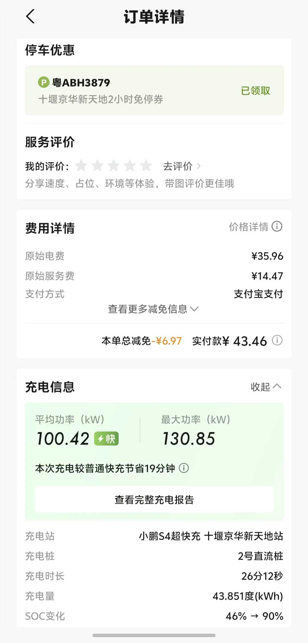 又来体验小鹏超充站了,这次选的普通桩,速度不是很给力,下次有机会还是要体验s4超充桩。充电站地址还是很好找的,价格也不贵。就是位置稍微有点难找,指引标牌还需要完善。
