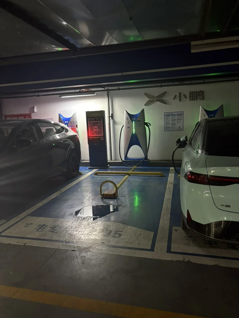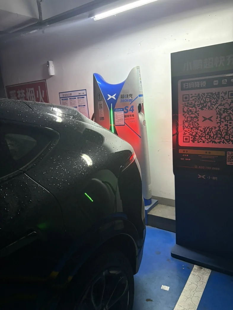家里没有条件装自有的充电桩,全靠小鹏自营或是第三方充电桩续命。