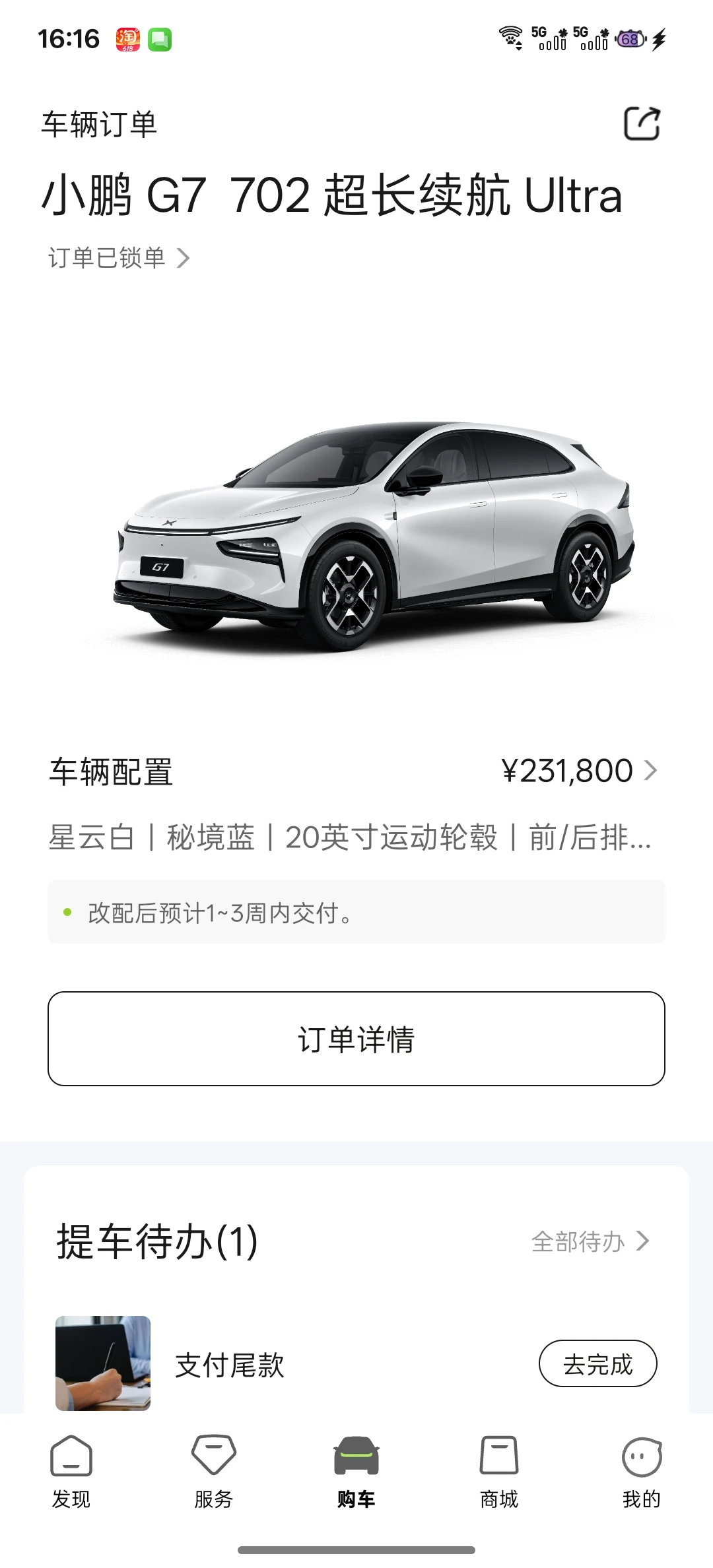 #晒小鹏G7大定# 今年去了小鹏销售中心2次,试驾了g9两次,g6一次。原本已经g9交了定金。后来看到g7准备上市开始预售了就果断取消了等待g7。7.3日上市看完何总的g7发布会,试也没试,果断下定锁单了。