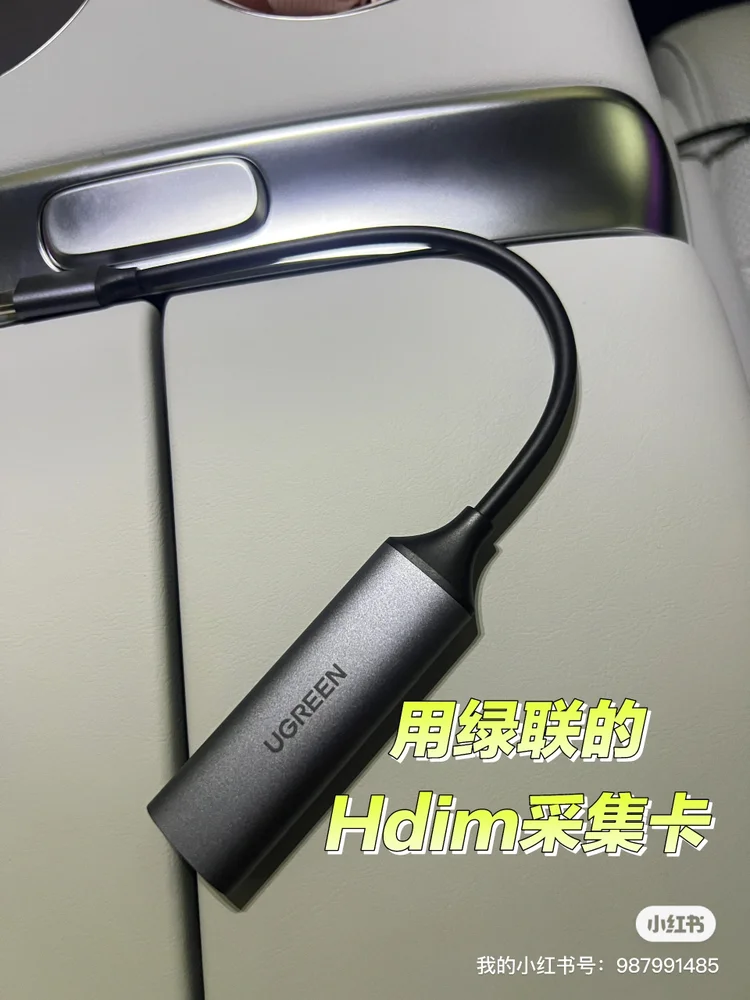 3️⃣ 采集卡连上车后排的Type-C接口 (有线投屏超稳!)
