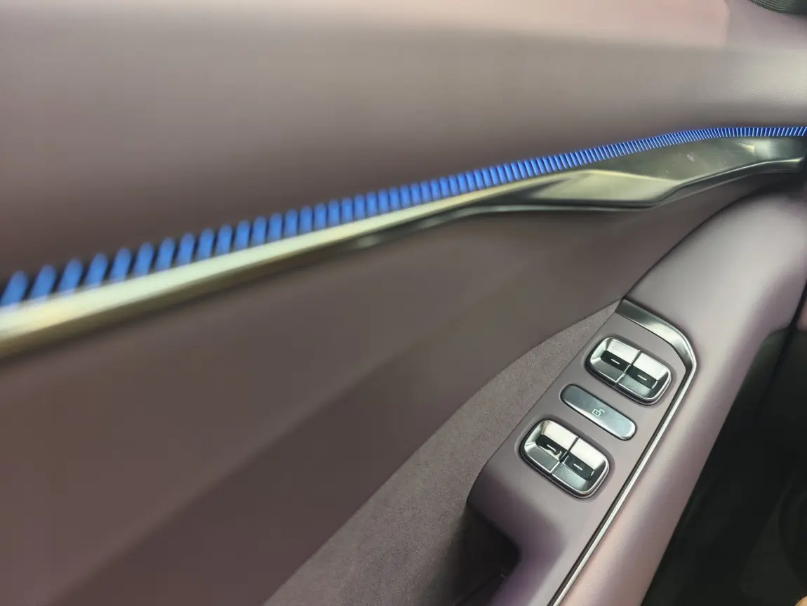 内饰看上去就是豪车的感觉,享受不一样的体验。按钮和语音控制都能顺利进行操控,非常智能化。流媒体后视镜降低了潜在的盲区风险,很贴心。还有标配的抬显HUD,简约而独特,不会让人眼花缭乱,更不会让人炫目造成安全风险。