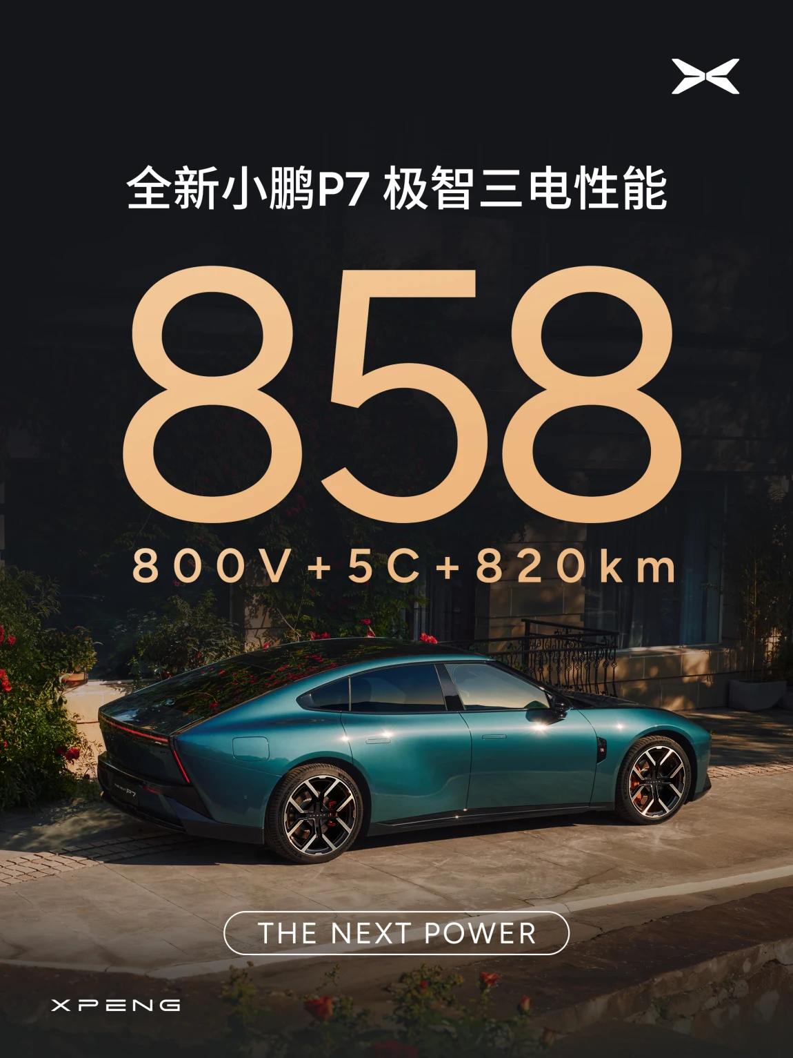 全新小鹏P7搭载「858」,诠释极智三电性能!