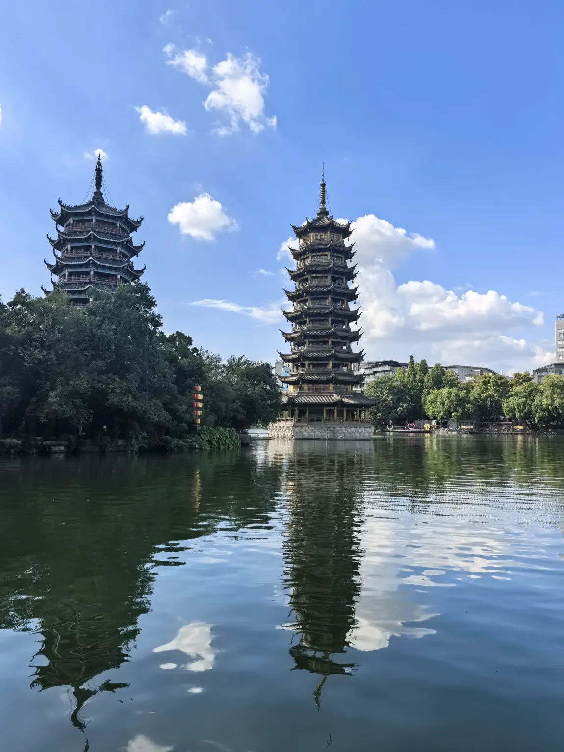 吃过饭后,我们去了象山景区,车停在桂林市人民医院停车场🅿,景区人太多,车根本不让进。门票0,看了象鼻山,坐了竹筏,看了日月双塔,玩了水枪,看到彩虹🌈,幸运,打卡结束。