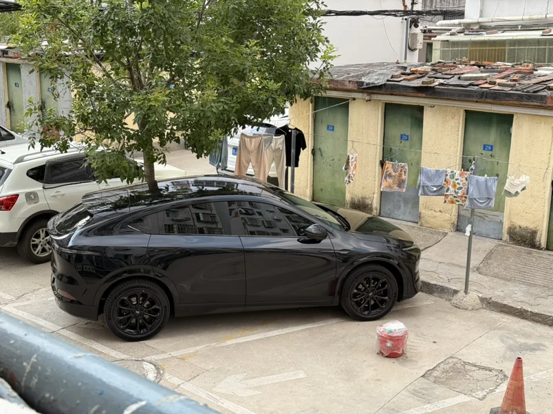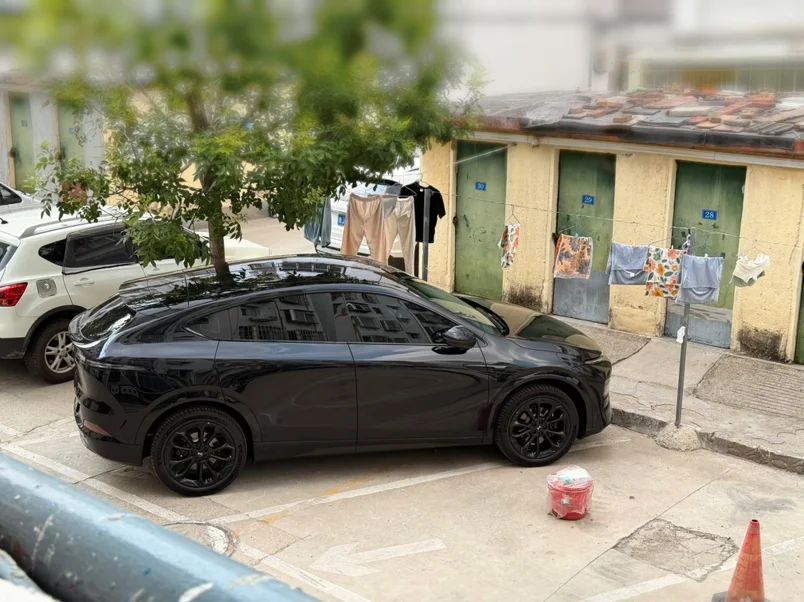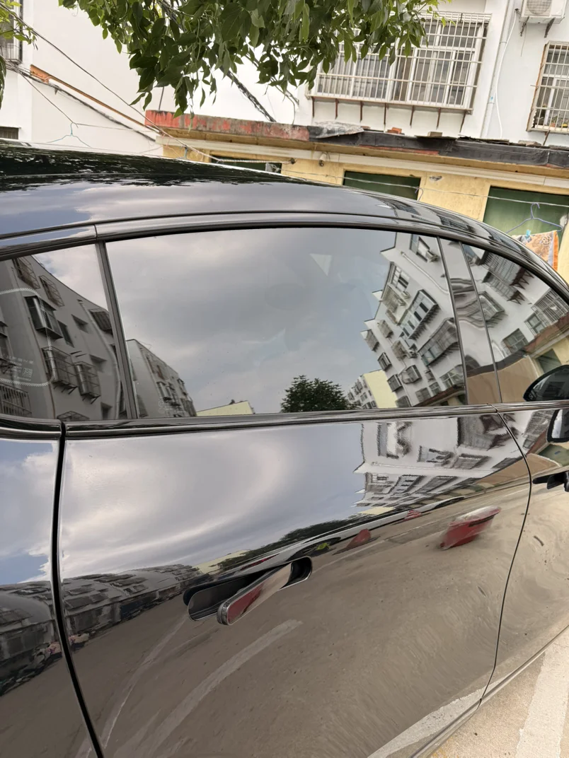 全黑色的玻璃膜,夜间和地库有些影响视线,为了一致性,忍了。