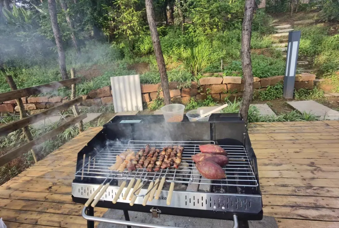 不论是家庭聚会还是户外野营,墨烟立式烧烤架均能完美地连接美食与自然,使我能够在享受烧烤美味的同时,也沉浸于自然之美。