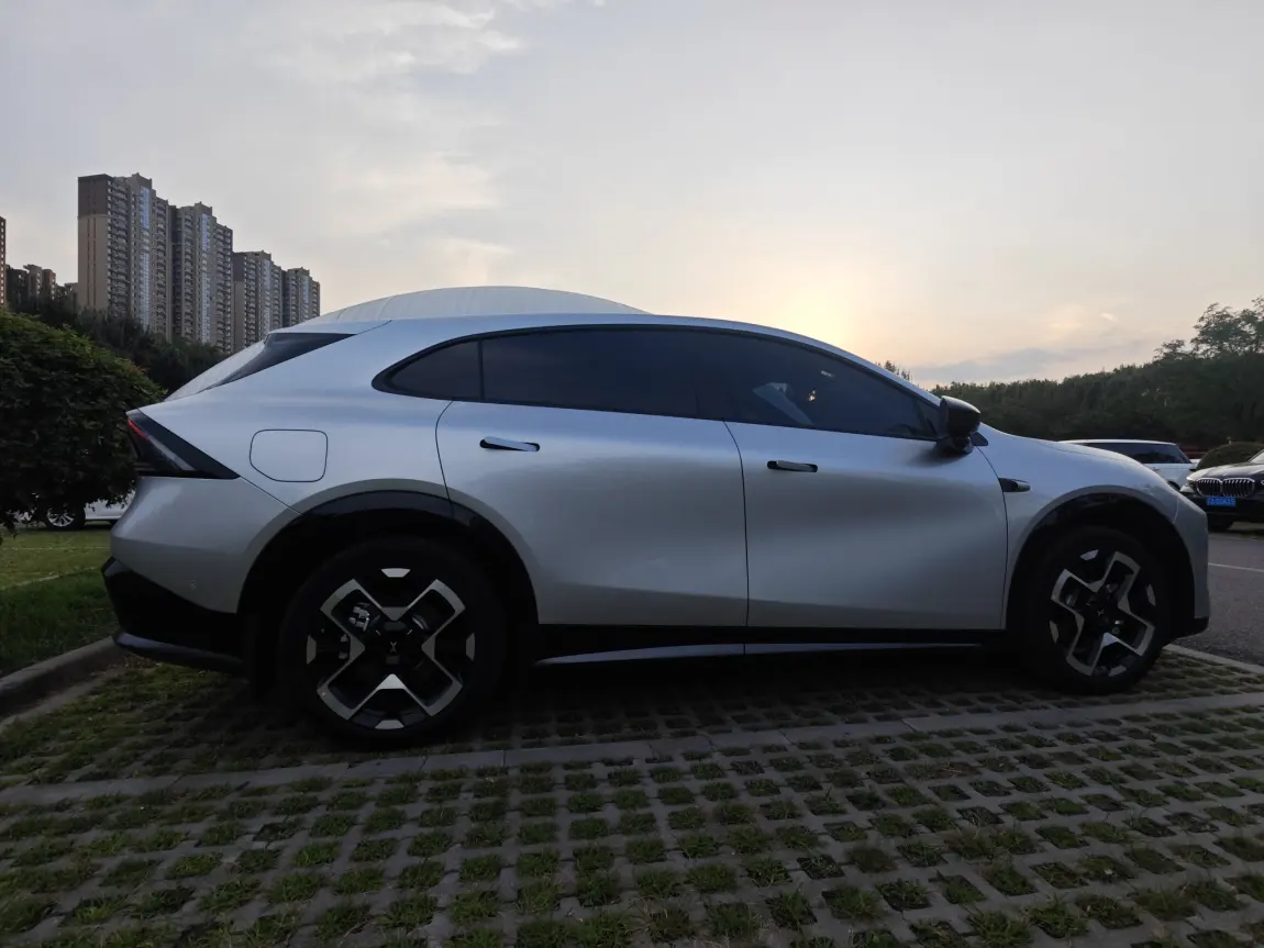 车身侧面,线条流畅自然,悬浮式车顶搭配动感腰线,从车头绵延至车尾,营造出蓄势待发的运动姿态,仿佛一头随时准备捕猎的猎豹。隐藏式门把手的设计,不仅降低风阻,更提升整车科技感与一体性,轻轻触碰,车门优雅开启,仪式感满满。