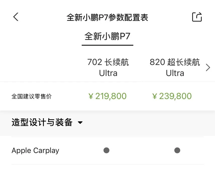 看到新P7支持CarPlay还是很震惊的,毕竟之前完全没在小鹏的产品上看到过以为厂家方面完全不考虑这个功能了。有当然很好,但如果P7的适配都做了,G7能不能一并也做了哈哈,就算两款Max版不行,至少Ultra版的算力肯定是和新P7相同的,能不能考虑给G7 Ultra版上个CarPlay呢?