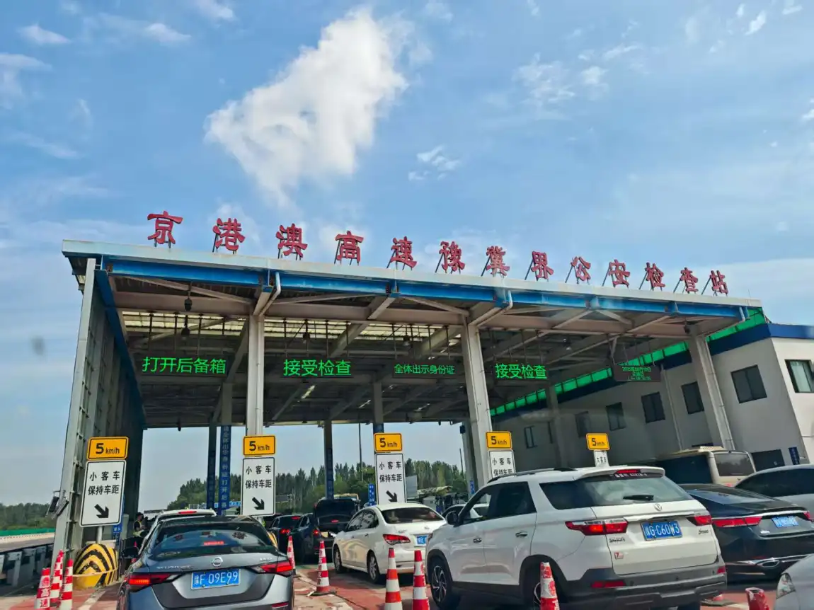 每辆车都要打开后备箱接受检查,我们带了胖东来的果汁和🍺啤酒