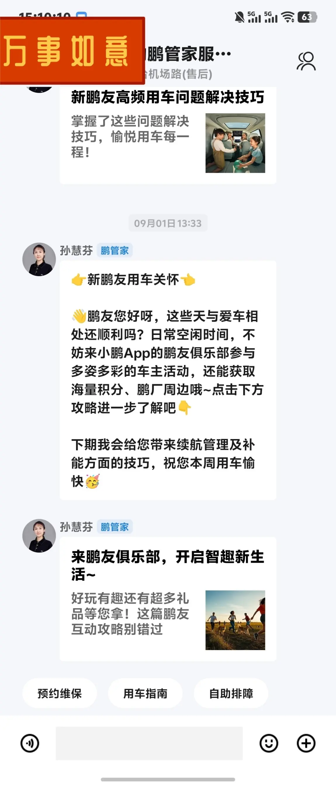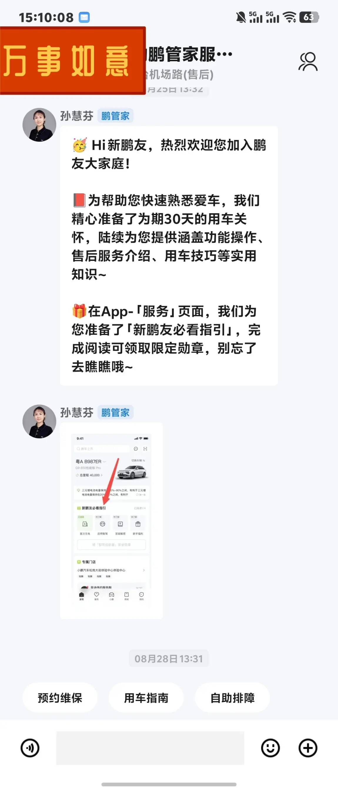 今年8月末提了Mona M03之后,我的专属管家就立即在微信上添加了我,并且在小鹏APP上建立了专属管家群,虽然提车才短短一个多周,但是专属鹏管家经常会给我推送用车技巧和温馨提示,包括节假日的问候,是不是还会发放商城优惠券。