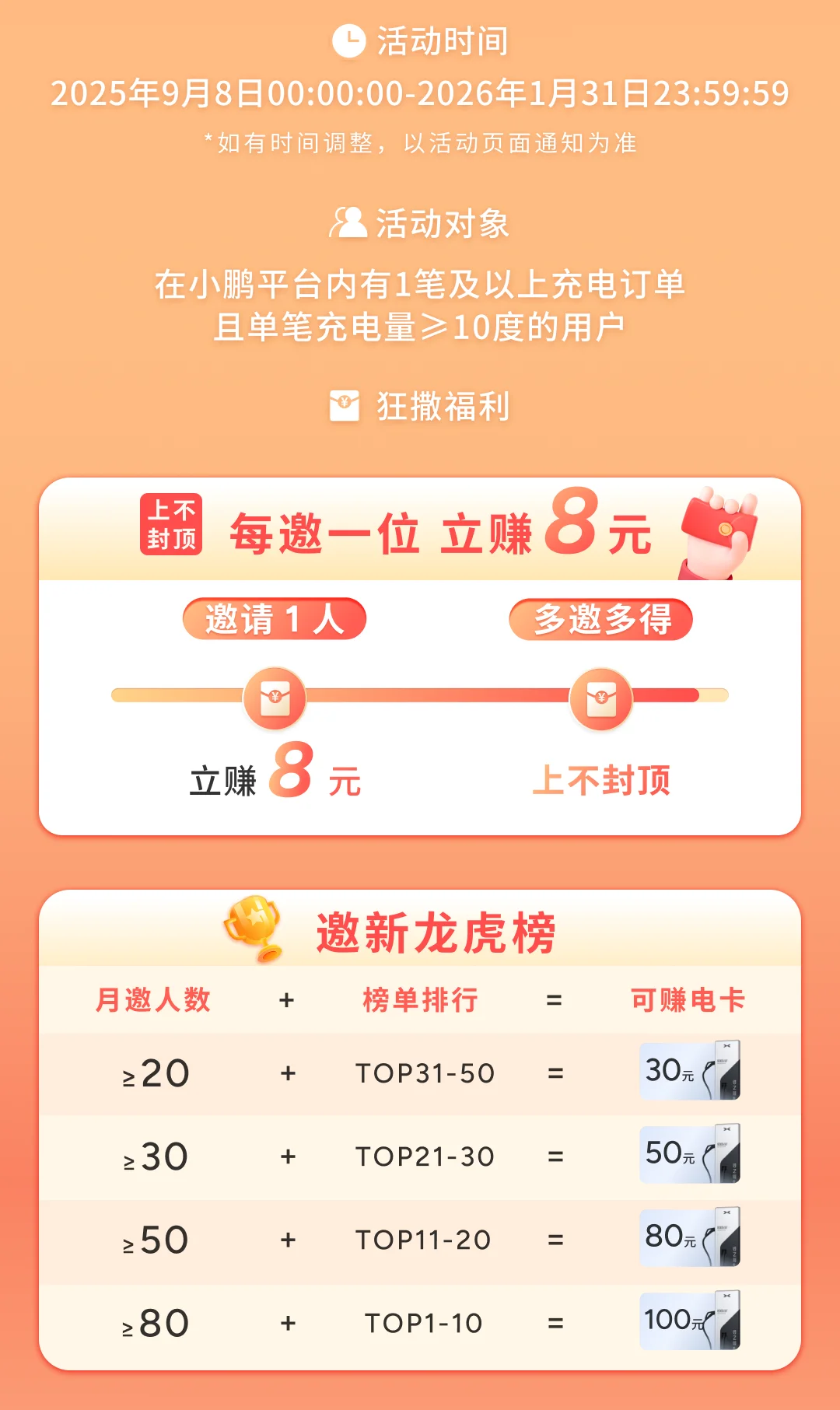 邀新充电 8元电卡无限赚