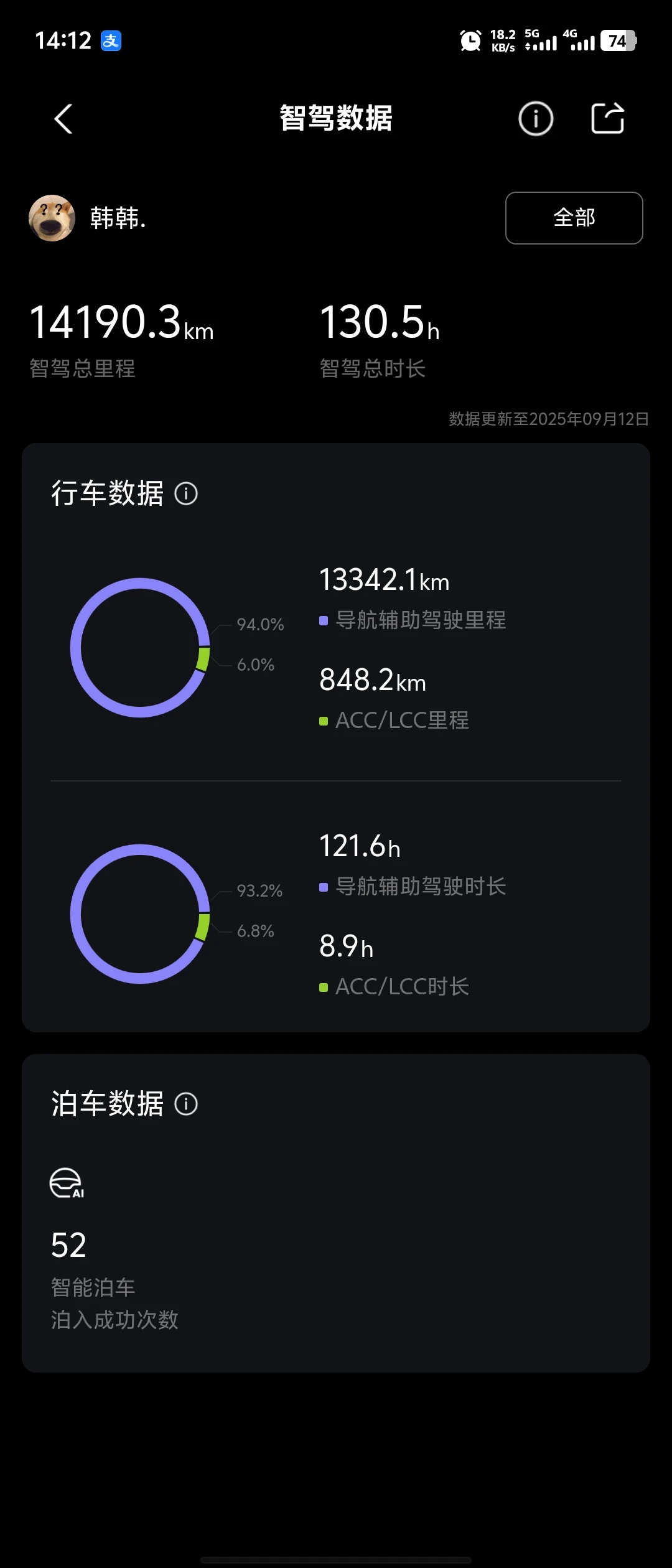 提车时官方WLTP满电续航是570km,当时身边不少朋友还劝我“电动车开个两三年,电池衰减肯定肉眼可见”,我自己也偷偷查过行业里的电池衰减标准,心里总有点悬。结果3年多下来,实际续航直接打了他们的脸:现在满电状态,跑高速(110-120km/h车速、空调24℃、满载3人+后备箱行李)还能稳跑450km,往返400km的长途根本不用中途找充电桩,心里特别踏实;要是在城区开,不管是早高峰的拥堵路段(龟速跟车+空调常开),还是周末的顺畅环路,能耗基本稳定在13-14kWh/100km,满电跑500km完全没问题,有时候开得温柔点,续航甚至能再往上飘一飘。