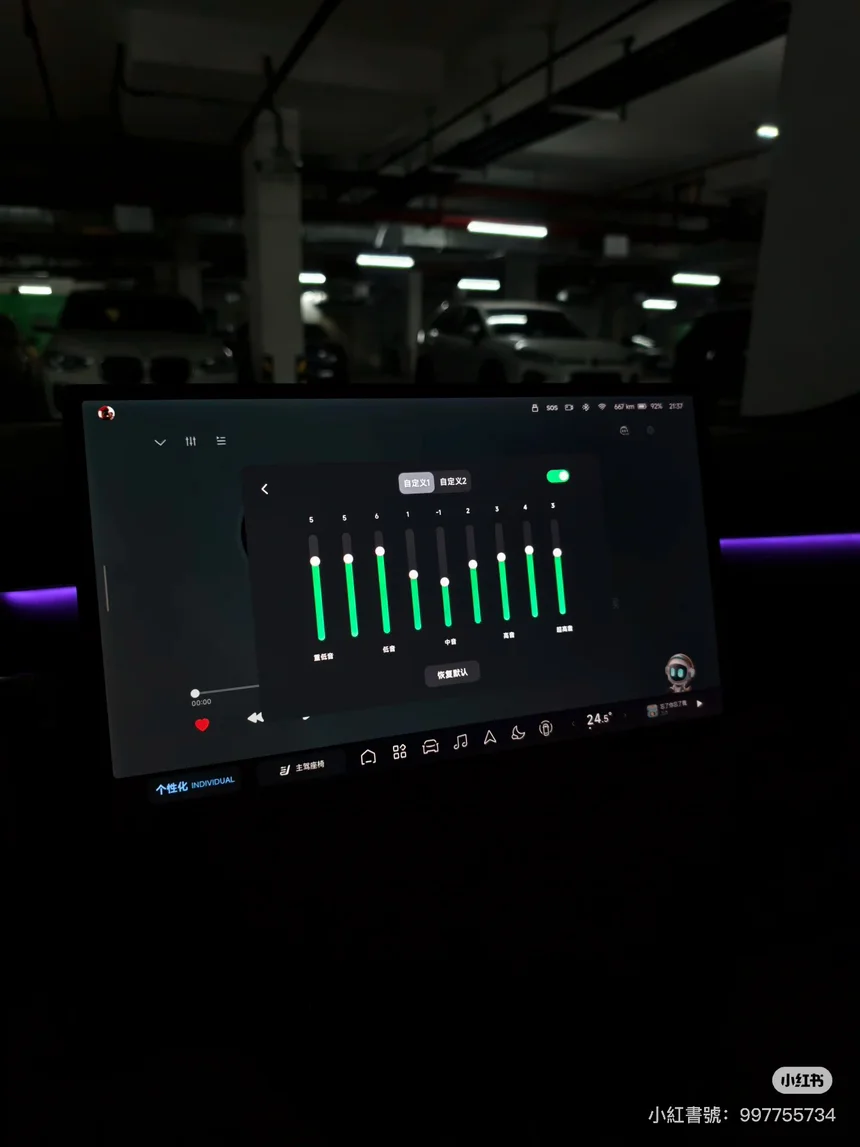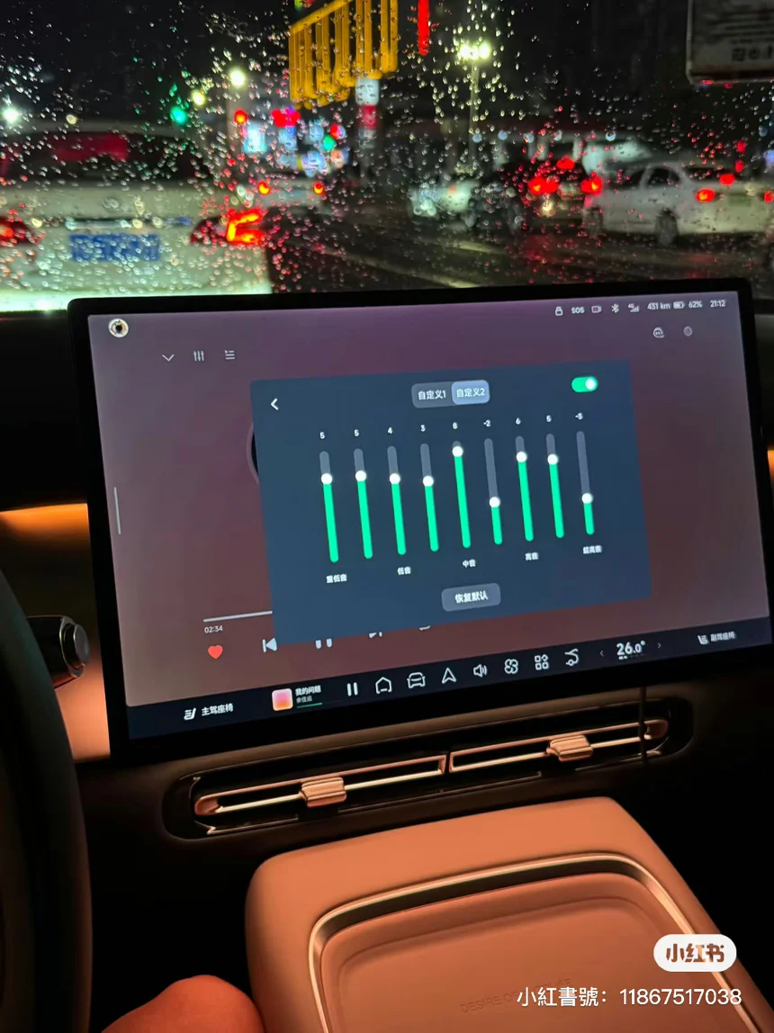 在网上看了一些评论 P7+的音响效果,我对车的音响要求还是很高的,虽然试驾的时候感受确实很一般,但是整体感觉和性价比让我做出了妥协,也不能选装别的品牌音响确实是很遗憾,提车的时候马上按自己做的功课对音响效果进行了设置,而且 P7+的QQ音乐不能设置qq 音乐的效果,只能设置车子自带的,强烈建议!!!后面 OTA 一下吧。
