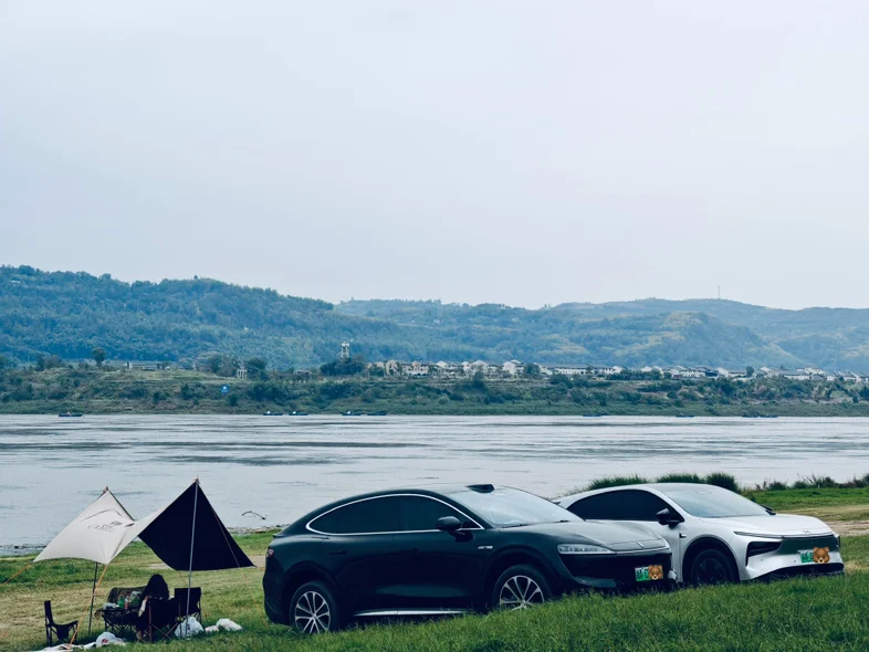 一到草原,江风就轻轻拂来,吹散了所有的疲惫和烦恼,只剩下满心的宁静与惬意。我们找了一处绝佳的位置安营扎寨,蓝天白云下,两辆车并肩停靠在绿茵茵的草坪上,那画面,和谐又美好,就像我和兄弟的情谊,稳稳当当,坚不可摧。