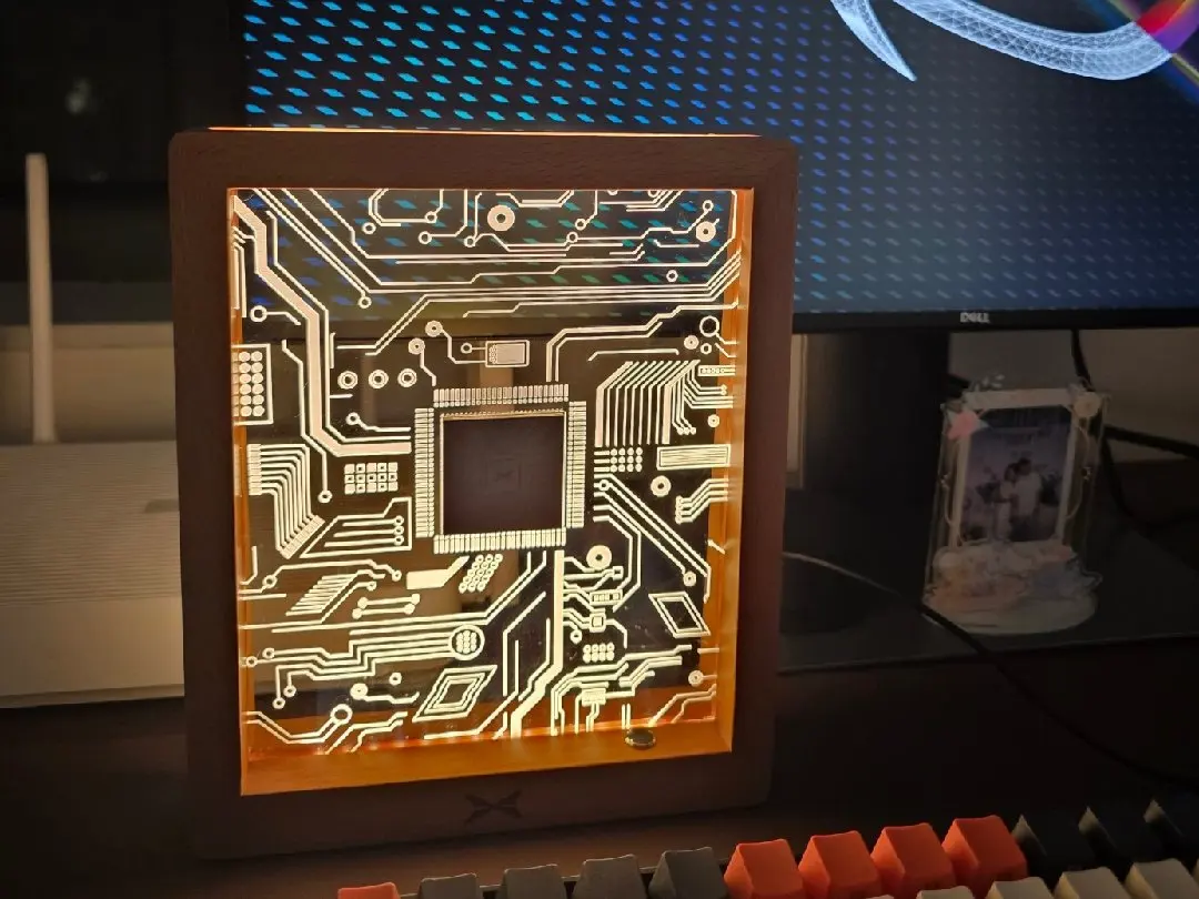 6.最后官方送了个摆件当纪念品,据说上面镶嵌的就是真正的820A芯片,需要插电才能点亮