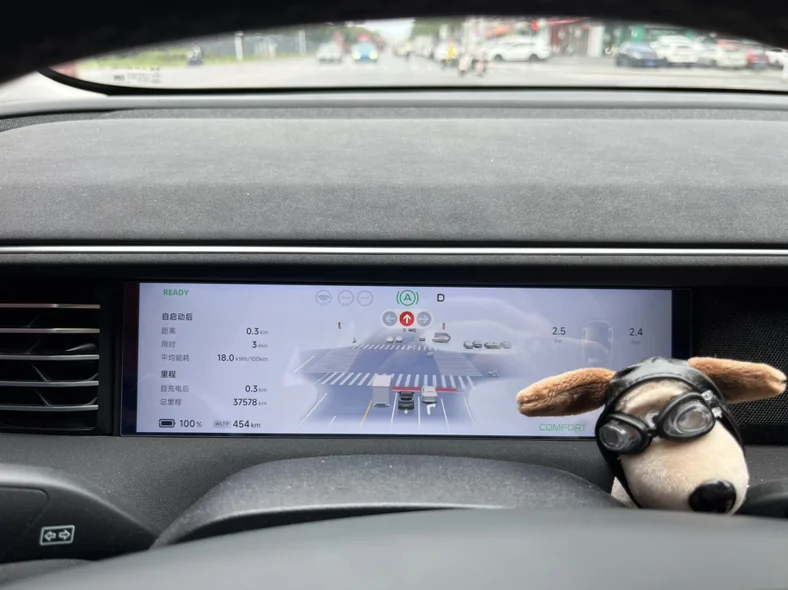 今天一共开了273km,电量还剩23%,更新后人机共驾速度提升到了130km,体验感真不错!最后本来晚上想去充电,但是看了下这里电价24h都一样,所以决定明天返程时再充电@鹏友大管家
