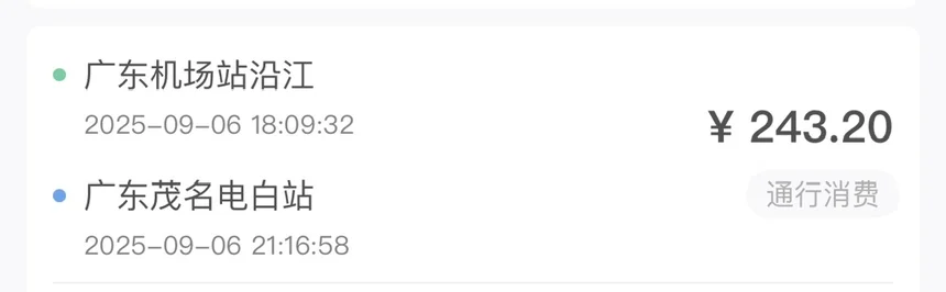 因为车有ETC,9.5折,实际的过路费打了9.5折后是243.2元。所以,来回加上150元的电费,出行的费用仅636元,四人平摊的话,就出行路费每人159元而已。