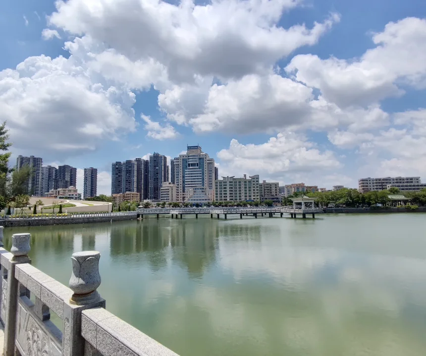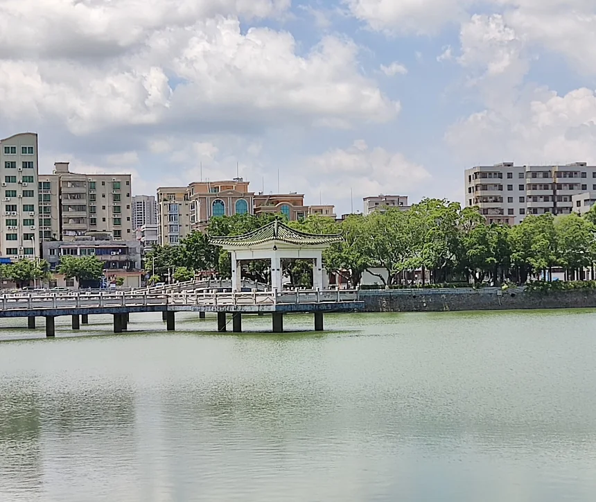 第二天天气不错,我们去了电白西湖公园。走进公园,沿着湖边慢慢走,偶尔能看到有人在散步、闲聊。