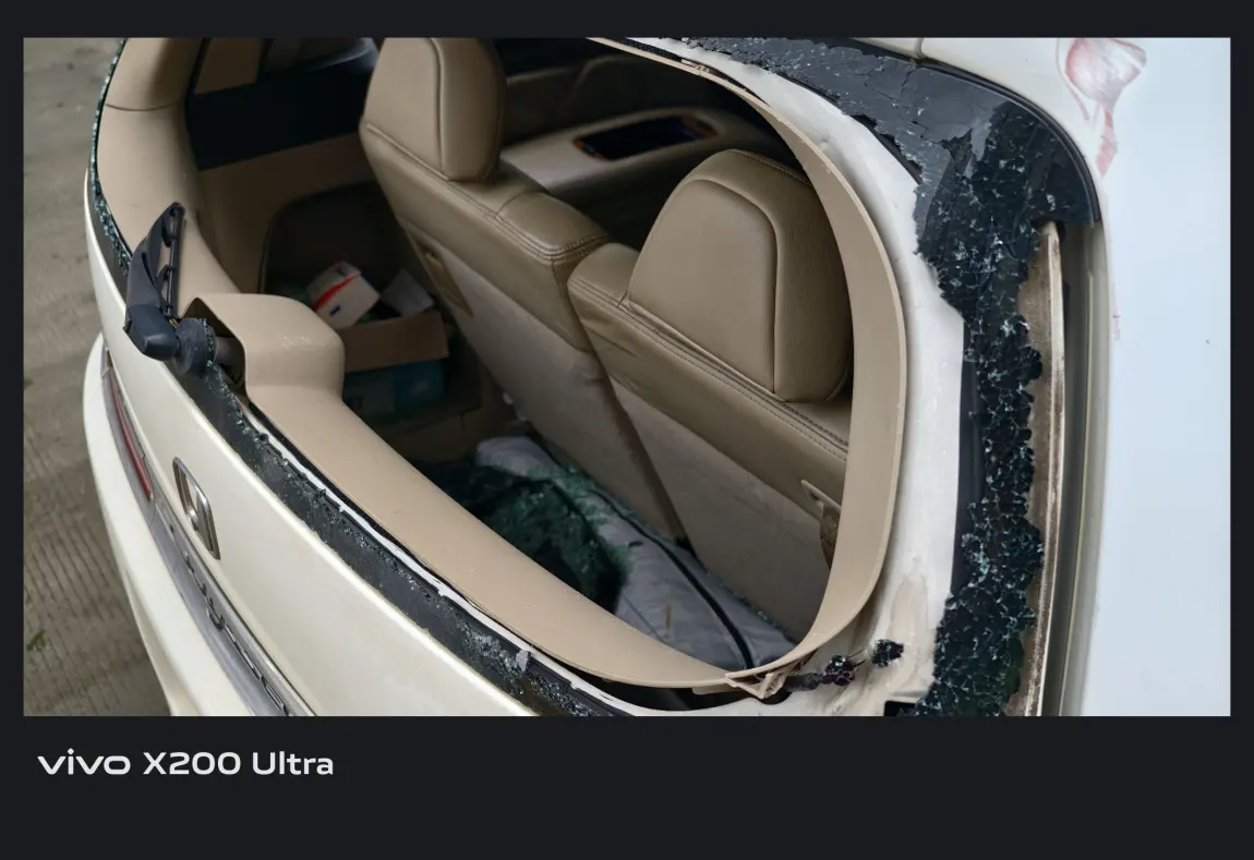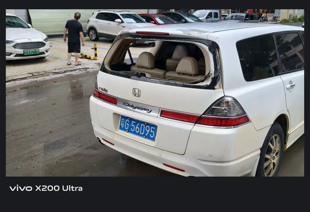 讲讲印象深刻的一些点吧,我是从海口往广州出行,由于偶遇了14级超强台风麦德姆,我千找万找的停车位还是躲过了大树砸下没躲过异物横飞,激光雷达罩挂彩碎了。。。好在激光雷达没事,看看前车后挡全碎里面一地玻璃碎屑和雨水,真是不幸中的万幸。