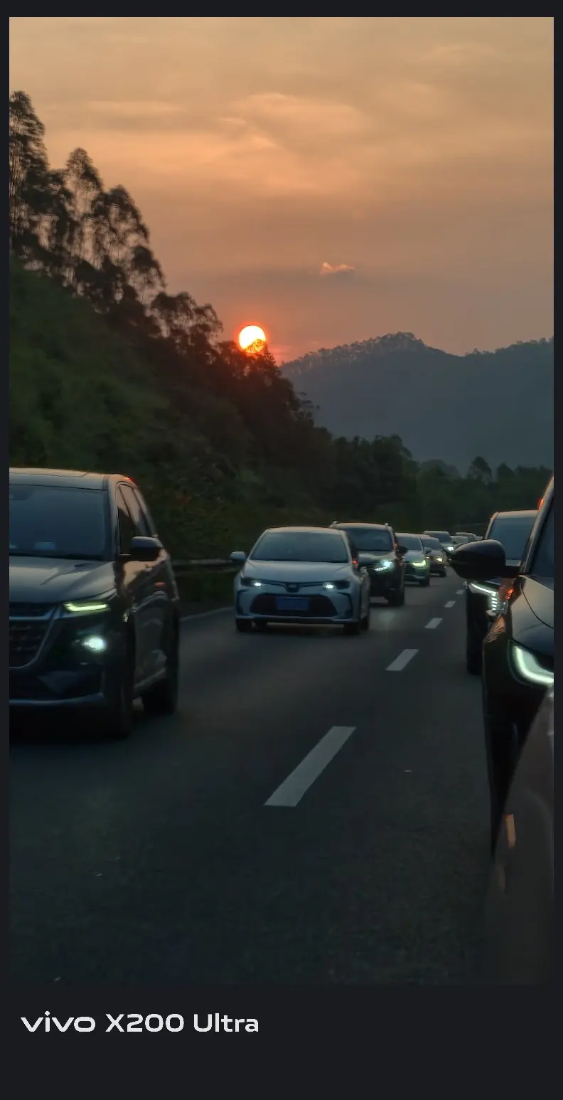 堵车路上还看到了夕阳和红月,服务区上还有的车辆好多好堵嘛,我都没在赶路时充过电,我在出发前就找了小鹏自营的充电站把电补满才出发,这个能耗和补能速度相当舒服,还有智驾为我路途中保驾护航,减轻疲劳,我就好好看路面情况随时处理突发状况就好啦。