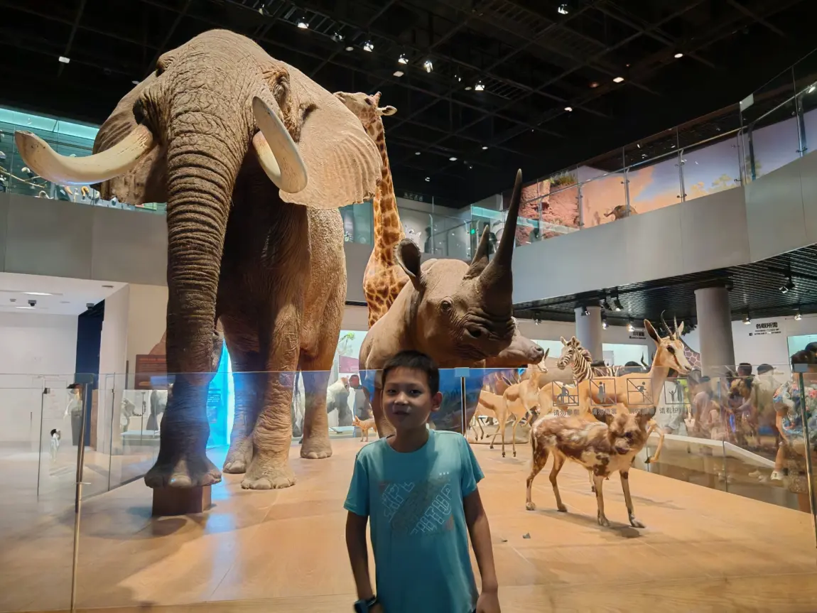 面对史前巨兽的骨架,他不再仅是惊叹,更开始思考物种的兴衰与演化。在丰富的生态展区前,他专注地比对图鉴,辨认本地鸟类与昆虫,并和我们讨论起食物链与生态平衡。@鹏友爱公益