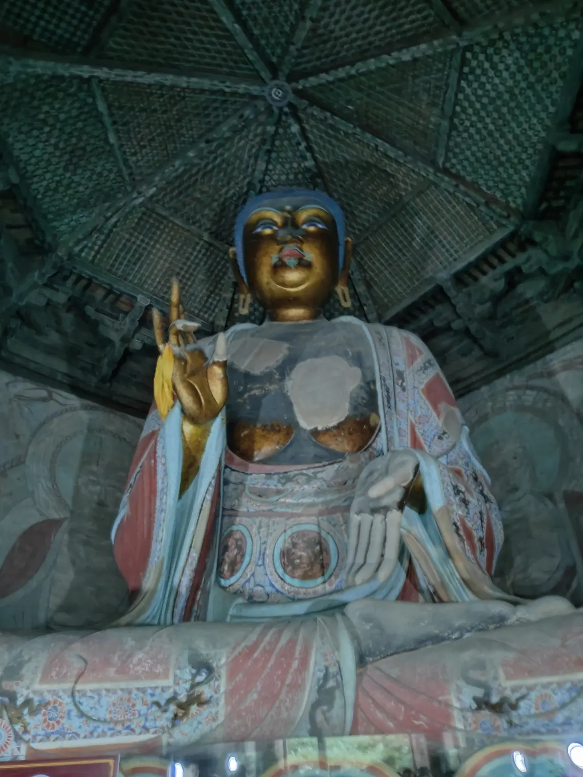 仅一层可参观,有一尊巨大的佛像。游客很多,摩肩接踵。