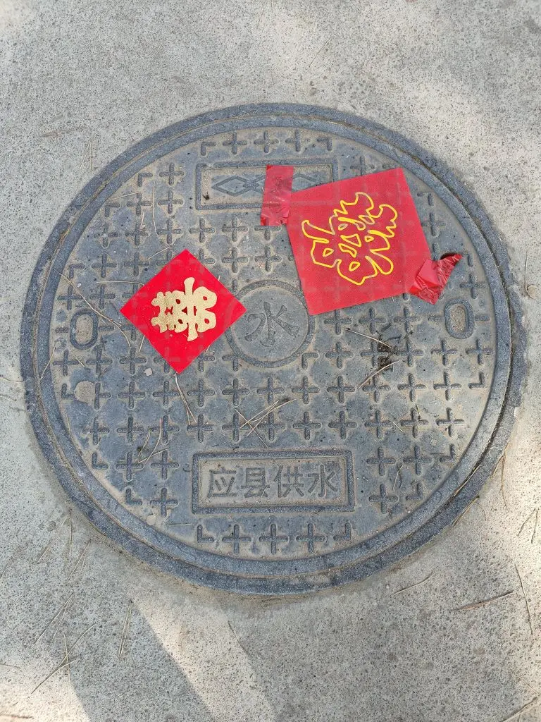 国庆结婚的人多,大街小巷的井盖全贴了喜字。据说很多地方有这习俗,我倒是头一回见,记录一下。