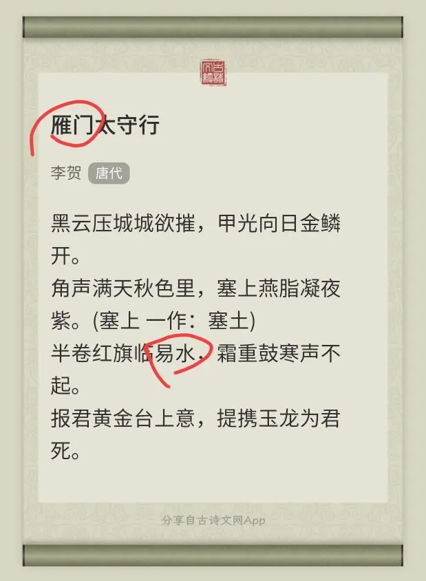 等摆渡车时,随手一搜与雁门关有关的古诗,才发现自己一不小心又行走在唐诗里了😃