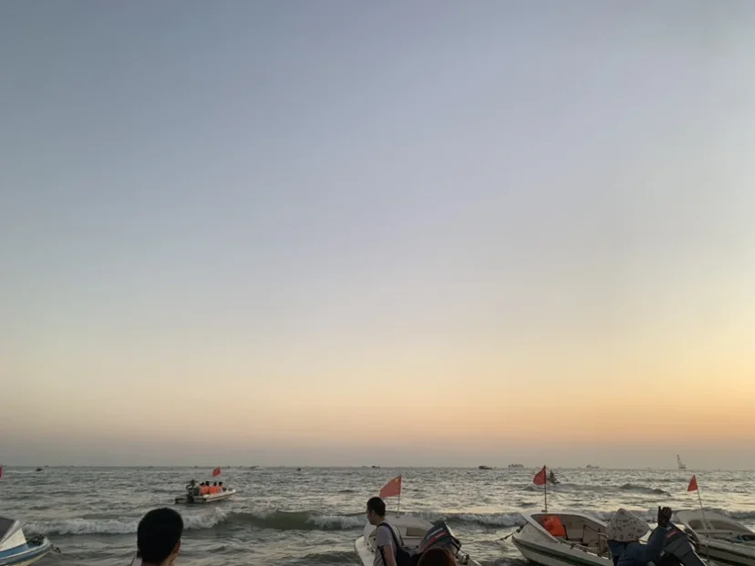 我们第一站是北海银滩,是广西北海市的著名旅游景点,以其“滩长平、沙细白、水温净、浪柔软、无鲨鱼”的特点,被誉为“中国第一滩”。