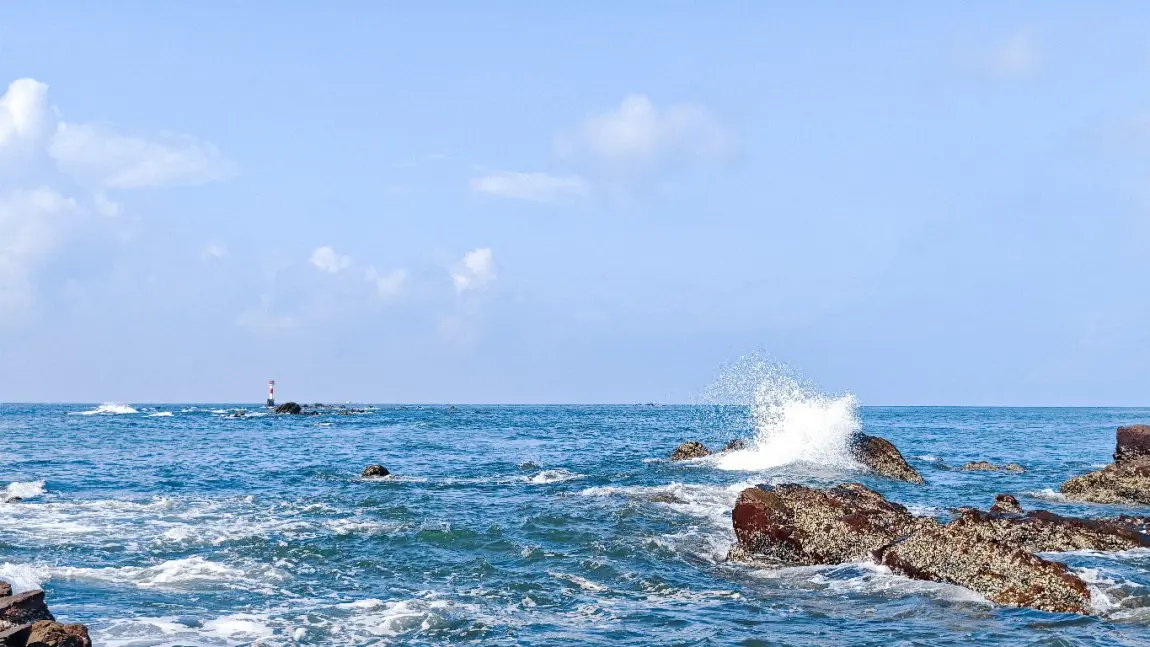 清晨从防城港市区出发,沿滨海公路向西南行驶约40分钟,便抵达怪石滩。这里没有细软沙滩,取而代之的是海浪与时间共同雕刻的火山岩奇观。黑褐色的礁石群如巨兽匍匐海岸,潮水退去后,石缝间留下翡翠色的水洼,藏着小螃蟹与海螺。当地渔民说,这些礁石是“龙王打翻的砚台”,而风暴季的浪涛撞击岩壁时,轰鸣声能传数里。
