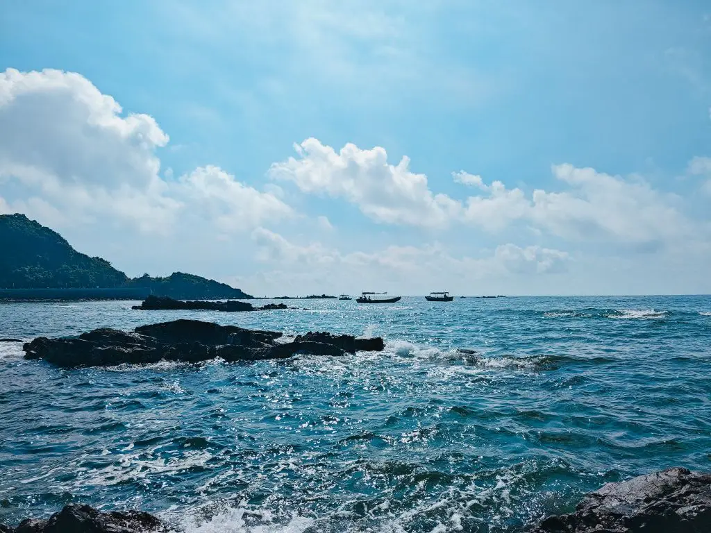 我踩着湿滑的岩壁攀至高处,脚下是蜂窝状的侵蚀孔洞,远处渔船如豆,与白浪线构成一幅水墨画。岸边简陋的渔家排档支着遮阳棚,老板娘用白话招呼:“尝尝刚捞的石头螺,姜葱爆炒最鲜!”一盘螺肉脆嫩,蘸着酸辣汁,就着海风下肚,是山海馈赠的野趣。