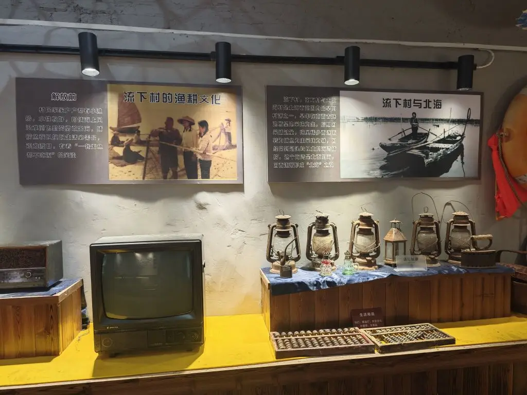 在山海美术馆里看到流下村的老照片,对比眼前文艺店铺与渔家生活的交融,恍若时空折叠。晚餐选了村口的渔家小炒,沙虫粥鲜甜,酸笋炒花甲酸辣呛口,老板说:“我们用的还是祖传的土灶哩!”