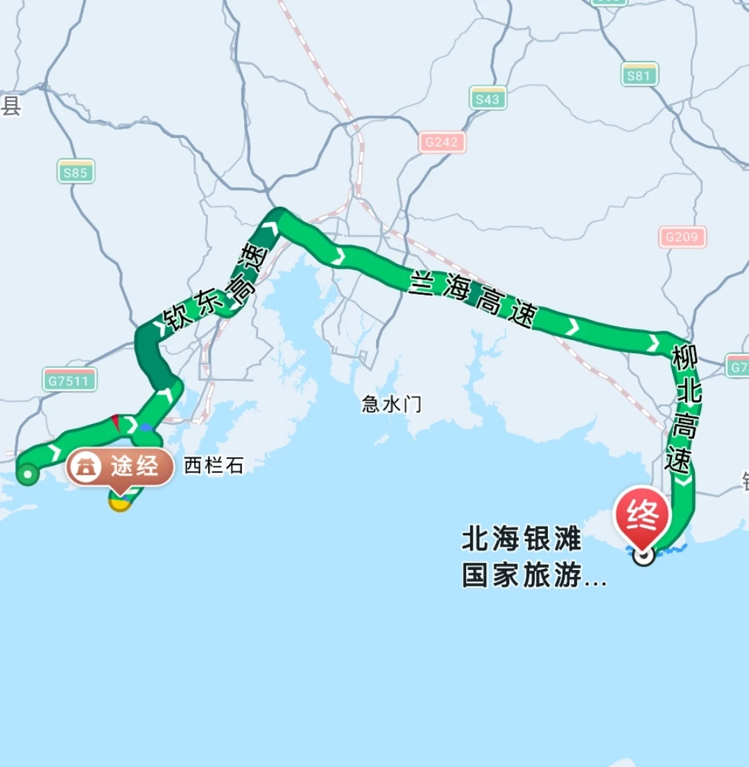 昨日在民宿附近进行了第三次补能,这边充电的人多,只能找个偏僻的镇上充电,有点难找,好在我来就一个人不用排队,充完后就有两个人排队的。今天从防城港出发先去怪石滩,因为台风会下雨,时间紧张,就放弃了九龙寨和古渔村两个景点。