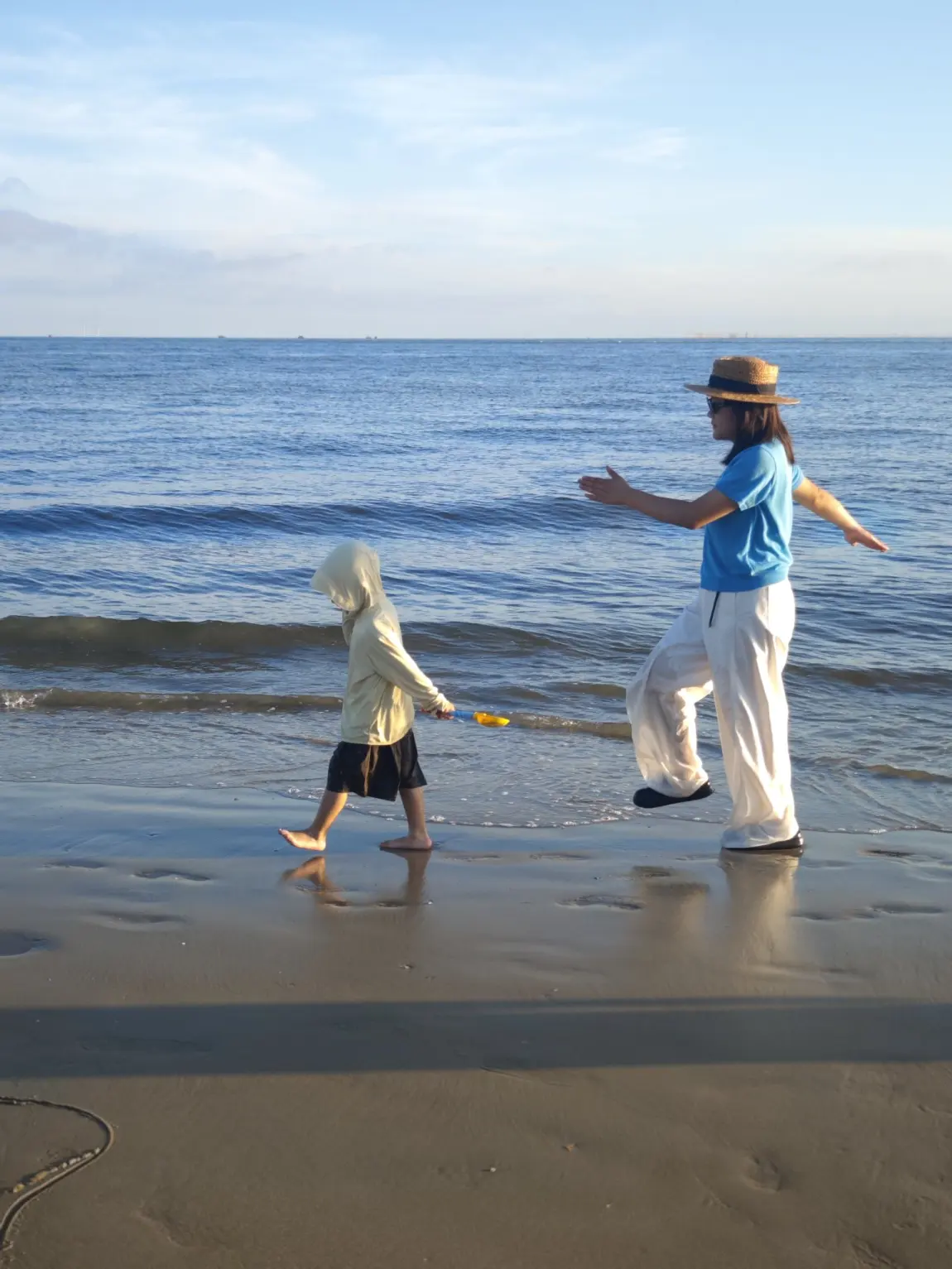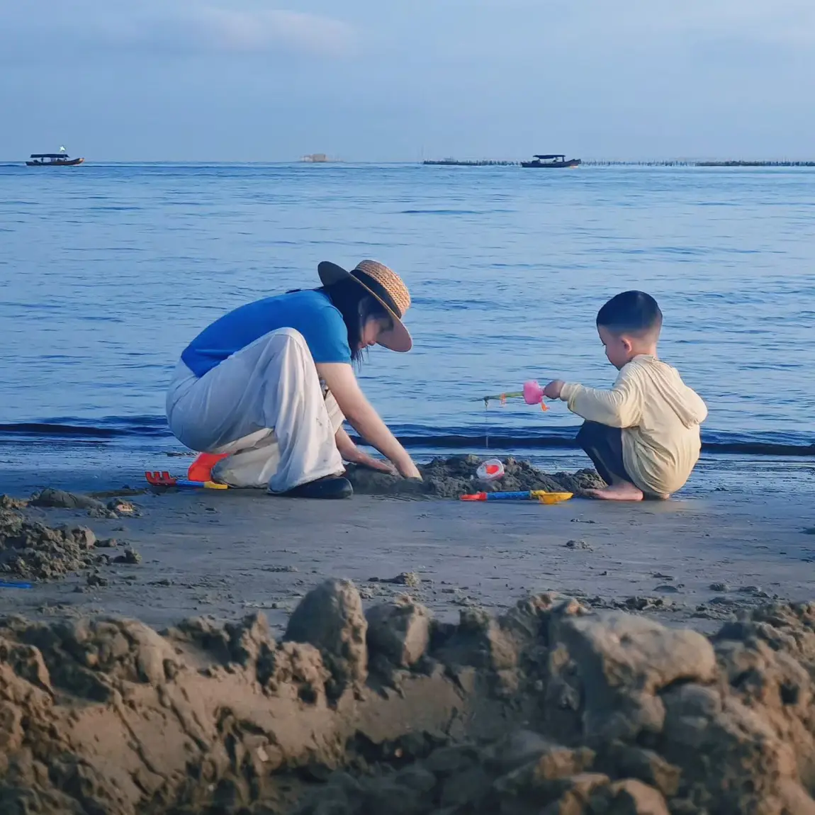 午后驱车2小时直达北海,银滩的招牌在阳光下闪着光。这里的沙细如粉,含石英矿而色如白银,光脚踩上去像踏进温热的丝绸。与怪石滩的粗犷截然不同,银滩是温柔的——浪花轻吻岸线,孩童举着塑料桶追沙蟹,空中飘着七彩滑翔伞。