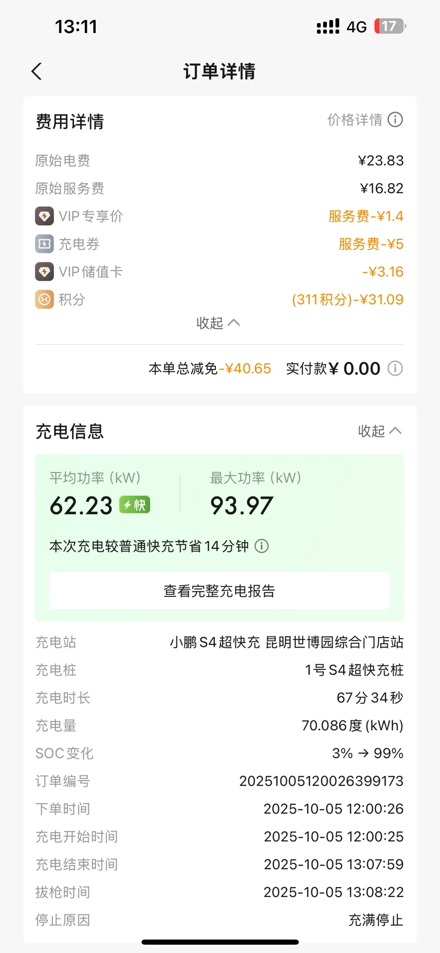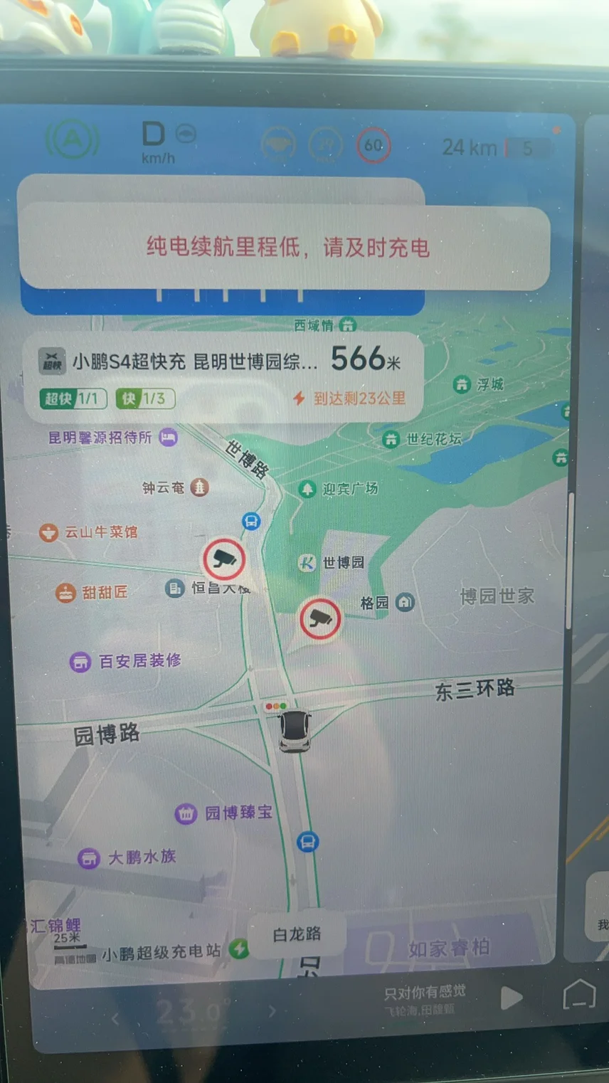 国庆开着小鹏M03出发从靠近四川的地方一路向南去昆明,在路上就是最好的安排了,我喜欢开车,去到不同的地方去感受不一样的城市,后备箱塞的满满当当。云南的高速沿途都是风景,风和日丽是出发的好时机,按耐不住内心的喜悦只想开着小鹏 M03 去外面看看这个世界。开了 358 公里,到达昆明,剩余电量百分之二十四,可继续行驶 141 公里,跑高速续航还能达到八五还是相当不错的,就看个人的脚法了。一路继续向南,来到了以弥勒佛同名的弥勒市,这就不得不来一趟弥勒佛这边拜一拜了,人山人海,节假日人就是多,下山就来到了弥勒市区的湖泉生态园,带上我的折叠椅一坐就是一个多小时,享受风景的同时还能给自己放放松。从昆明充了电就跑了弥勒一趟来回,从弥勒晚上赶回来的时候电也不多了,顺便首保也到了来做个保养,来的是买车的店昆明世博园店,新搬了 4S 店,整体比以前好多了,售后也很热情,我把问题一一描述了下,就进行首保及调试,再休息室坐着等待也是无聊就去看看其他车辆,并试驾了一下 P7,动力十足,确实很符合年轻人审美,回来就看车子已经洗好停车了,售后也描述下大概情况,基本都没什么问题,就是大灯蓝线还是没法彻底给我处理好,需要向厂家反馈情况,希望也能给我换了大灯,不然晚上确实有一定危险,我发给你们看一下上面是正常 M03 的大灯,中间几乎没有蓝线,光线也重合的刚刚好。