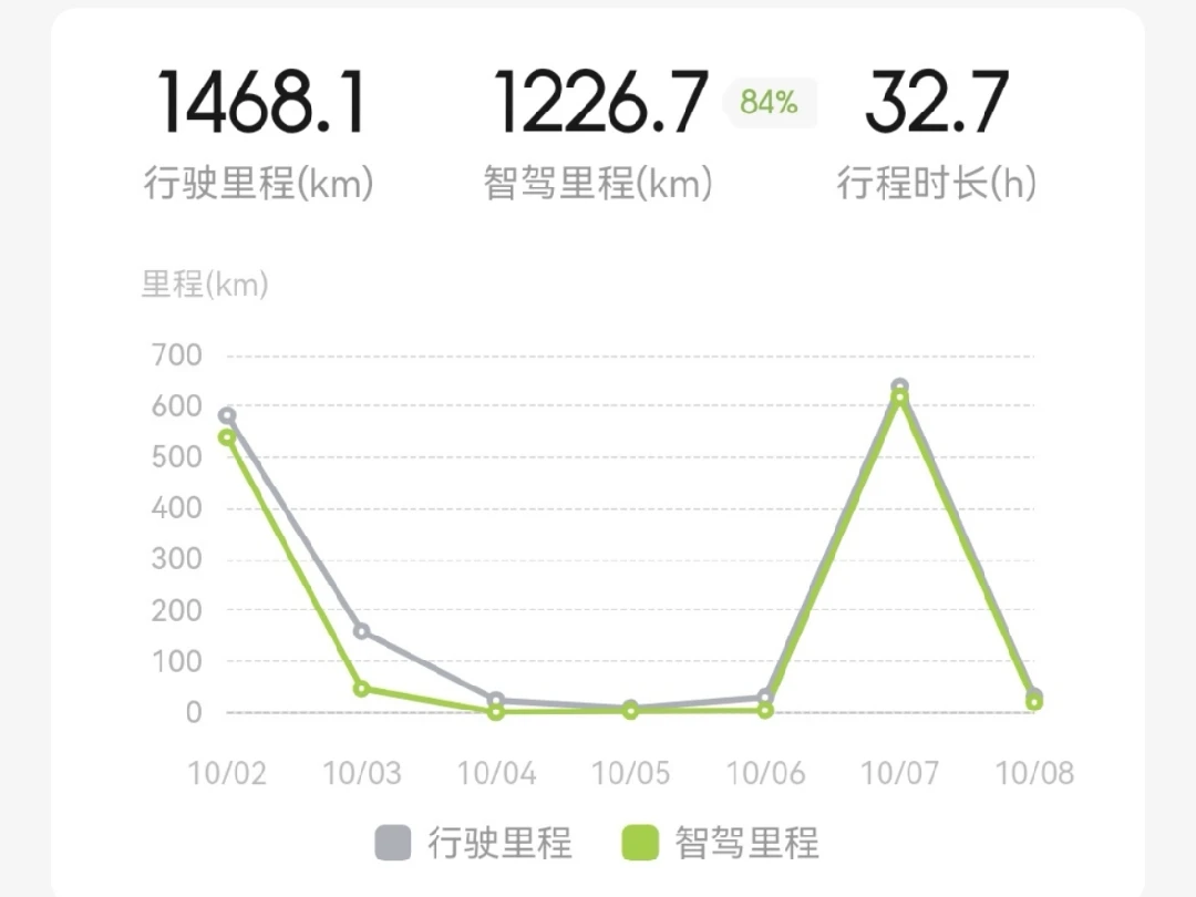 国庆开了快一千五百公里,智驾用了1200,小鹏智驾非常不错,值得拥有!