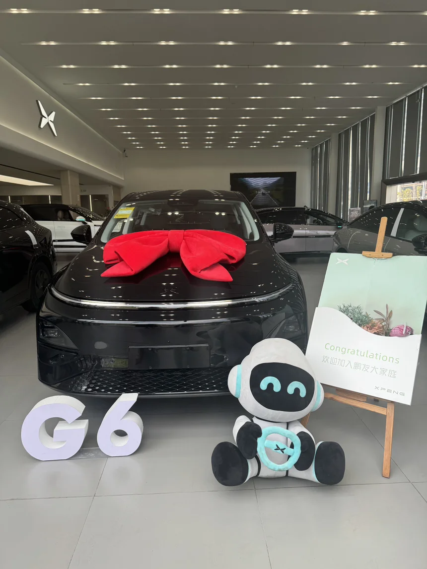 #我的提车作业# 等了一周,我的小鹏G6终于提车了!黑色车身配无框车门,阳光下科技感拉满,交付专员全程代办手续,1.5小时就搞定所有流程,仪式感十足。