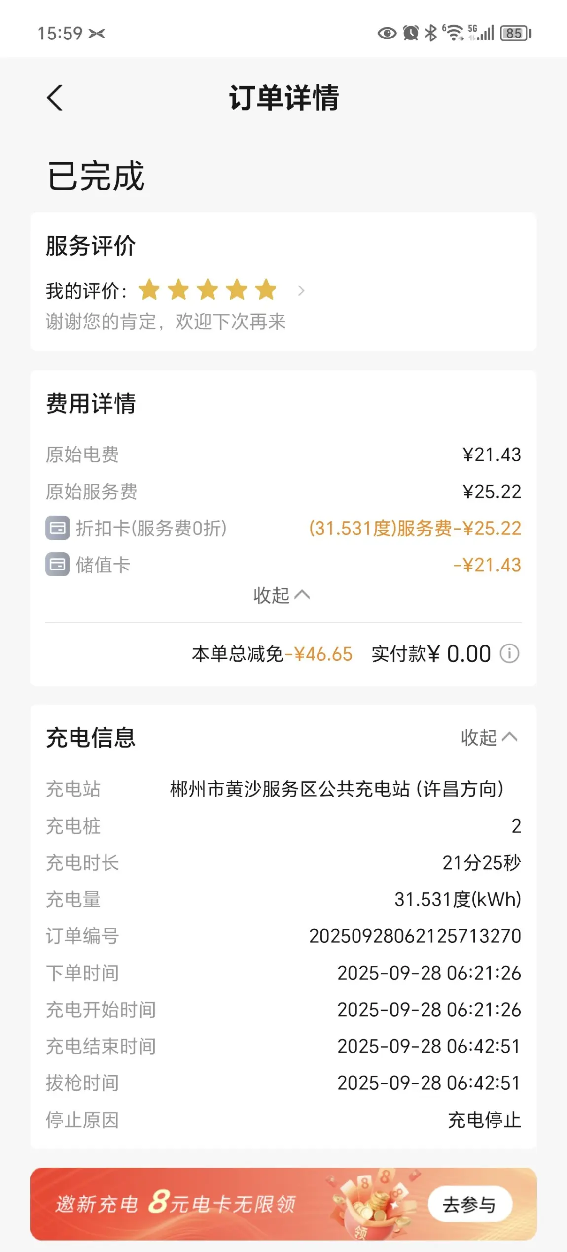 另外表扬鹏厂贴心的准备了66度充电服务费卷,不仅自营桩能充,在高速找的国家电网的桩也同样能充,帮我省了一大笔充电费用,都知道高速的桩那个服务费贵的吓人。
