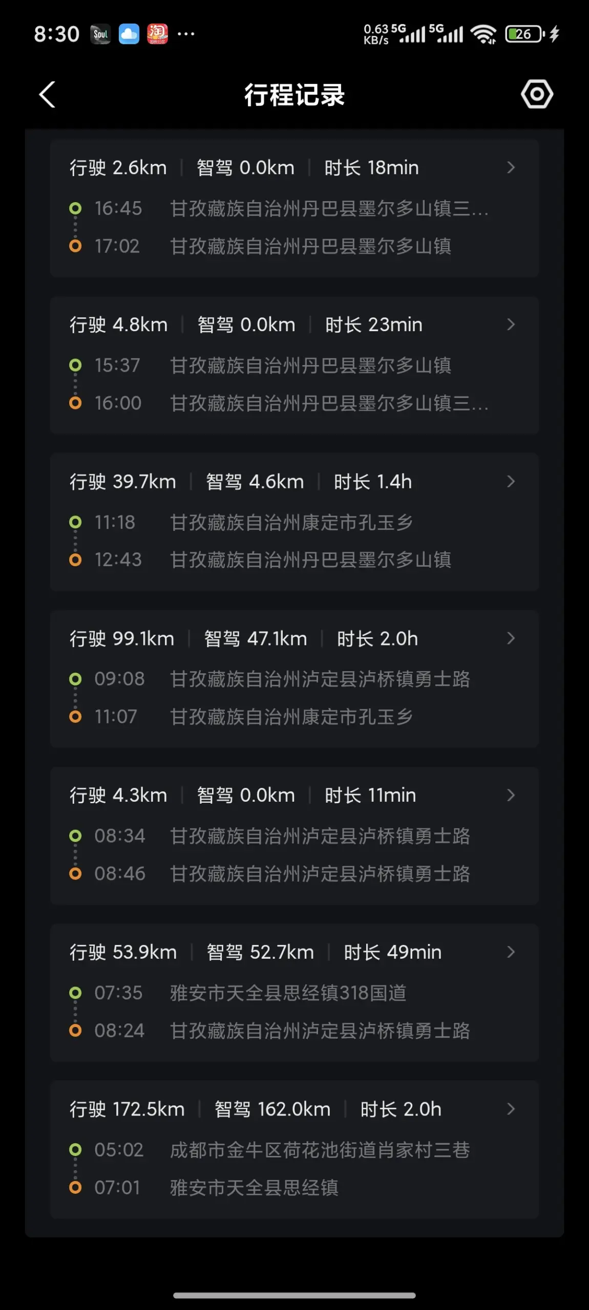 高速路段全程交给NGP智驾,双手轻扶方向盘就能安心看风景,全程几乎没手动介入过,长途驾驶的疲惫感直接减半。最惊喜的是补能体验,从四川境内到甘孜各县,服务区、民宿甚至小镇上都有充电桩,再也不用像以前那样提前焦虑找桩,吃饭休息的间隙就能轻松补能。