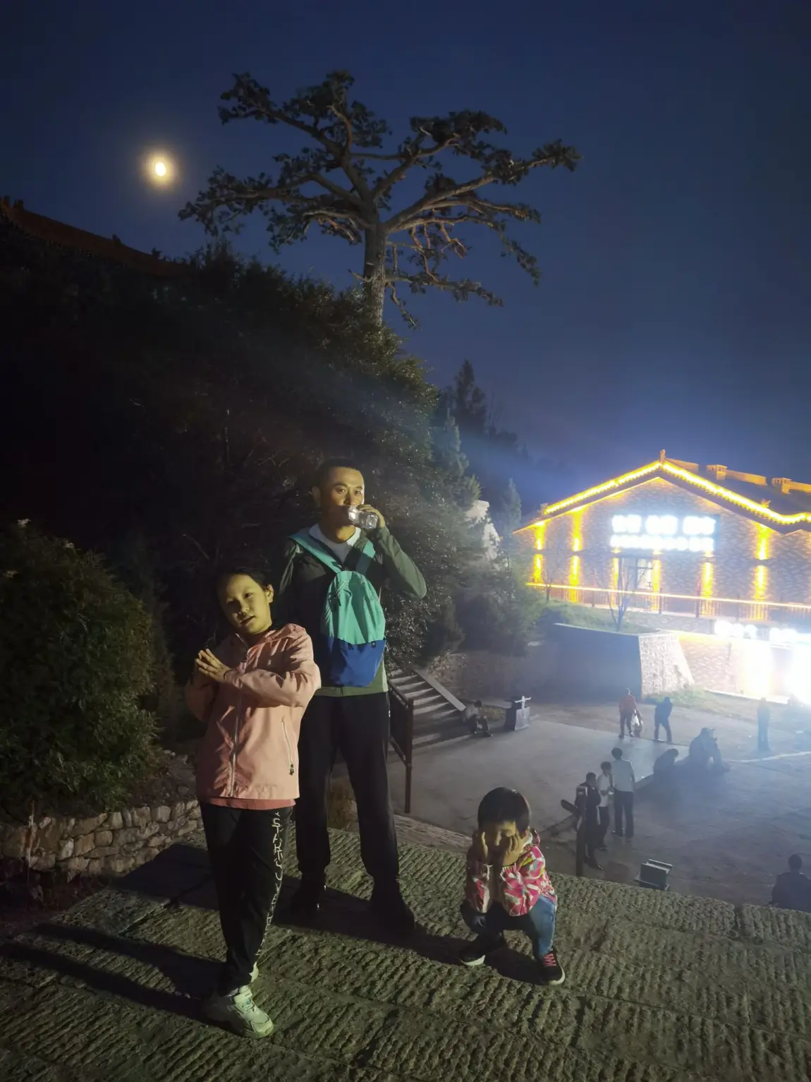 晚上我们6点开始下山到半山腰等摆渡车,中秋前的大月亮🌃陪着下山的我们