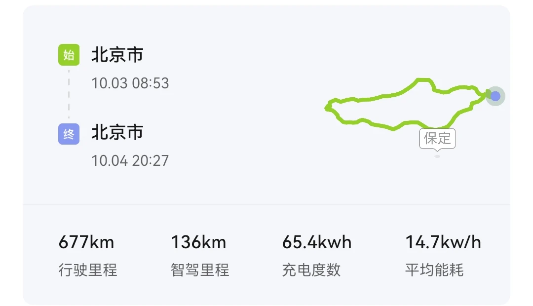 返程走京蔚高速回京,来回路上车不算多,很好开~往返677公里,充电65度,智驾里程186,路上车不多,非常适合开NGP智能辅助驾驶,跟着小p高速行~