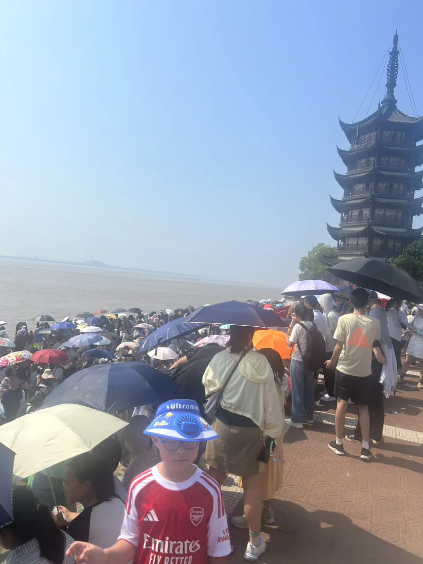 第三站来到海宁钱塘江看潮,可惜来早了,没看到大潮,只看到小潮失望,大潮要在节假日之后,不过来凑热闹的人一样不少,天气热的快中暑,堵车堵了1个小时才离开,还好开的x9能提前启动空调。