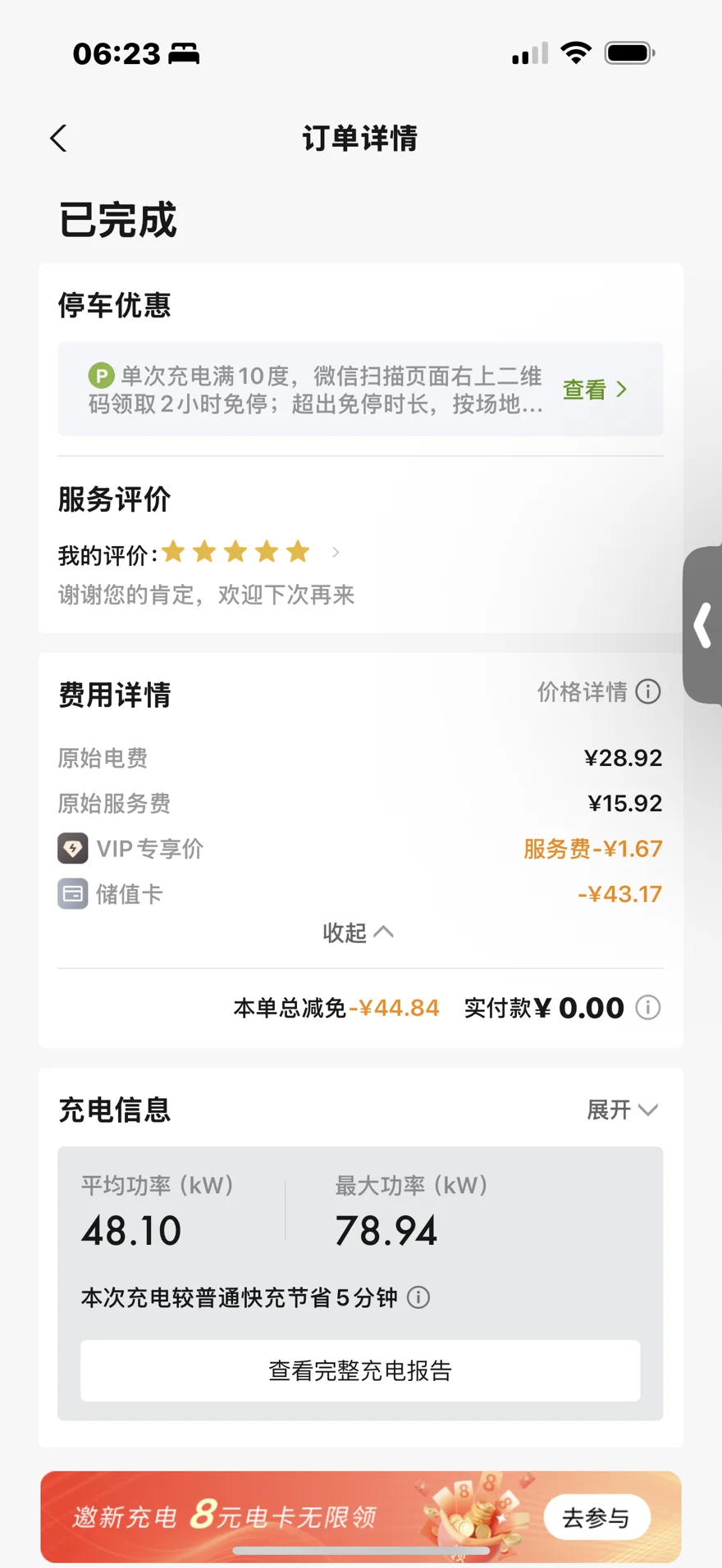 趁午休时间去那边,边吃午饭,边充电,才刚吃完,就提示充电已满!!!