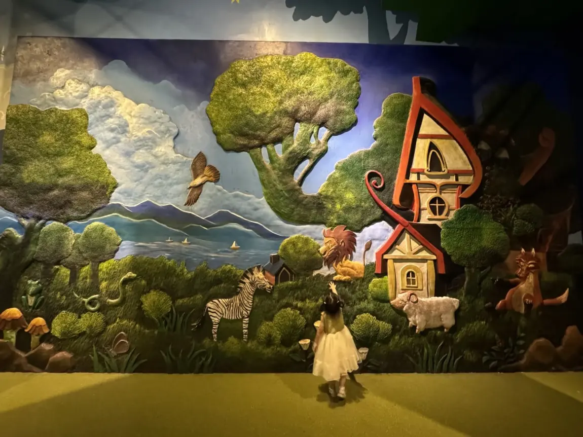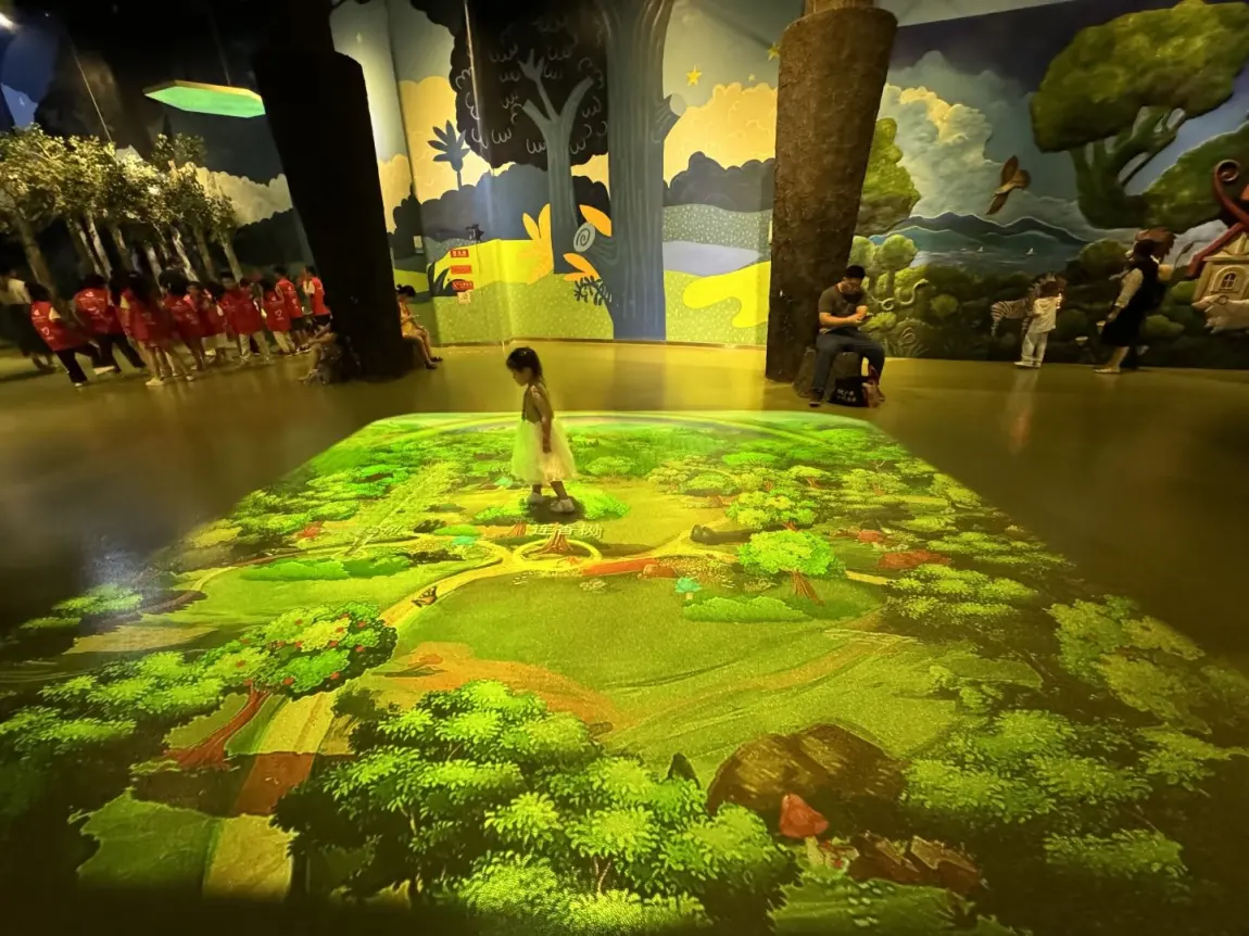 还有三楼的「垃圾分类VR游戏」,娃戴着眼镜把“塑料瓶”“菜叶”扔进对应垃圾桶,对了会有小动画夸他,玩了3遍还说“再玩一次!我要当环保小能手!”