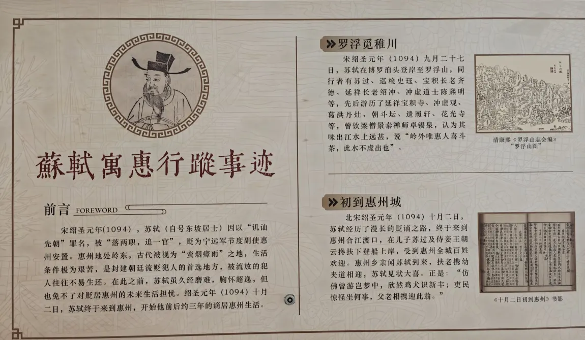 北宋绍圣元年,苏东坡被贬至惠州,度过两年又八个月,留下 587 篇诗文及嘉祐寺、惠州西湖等约 20 处 “苏迹”。