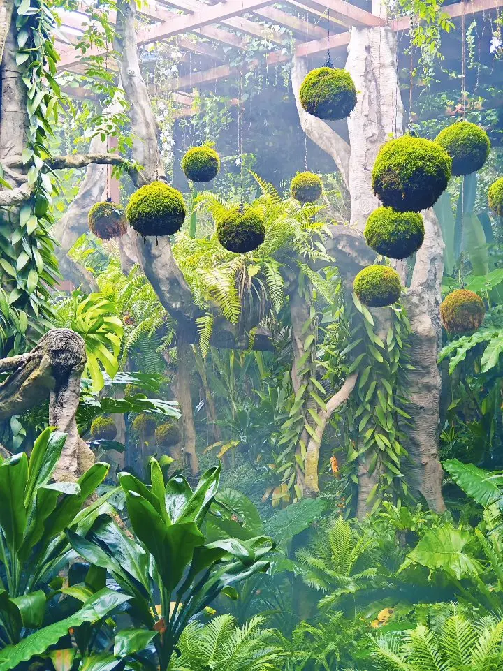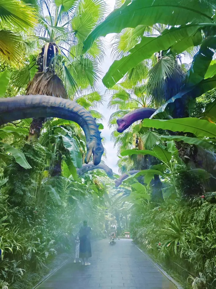 雨林大观里,板根、绞缠、附生等热带植物奇观令人叹为观止。湿润的空气中弥漫着草木清香,阳光透过层层叶片洒下斑驳光影。我轻触一株千年苏铁的粗糙表皮,感受着来自远古的生命脉动。这里的每一片叶子都在诉说着南宁作为"植物王国"的骄傲。