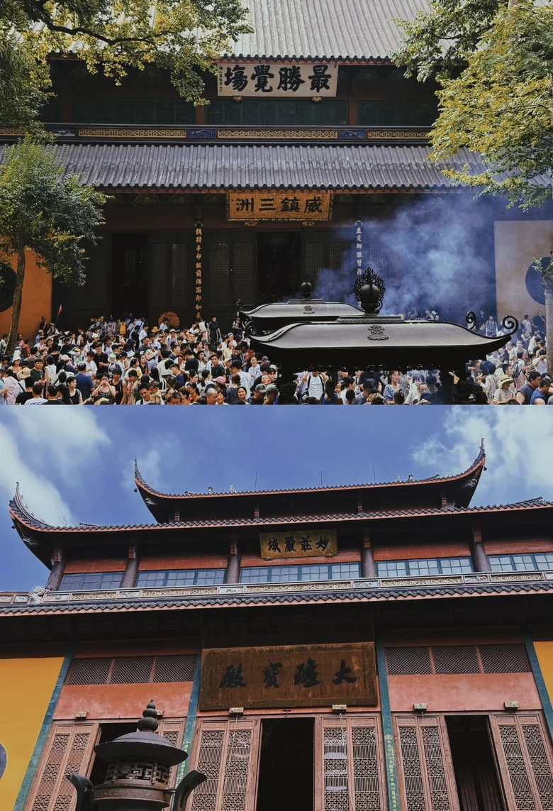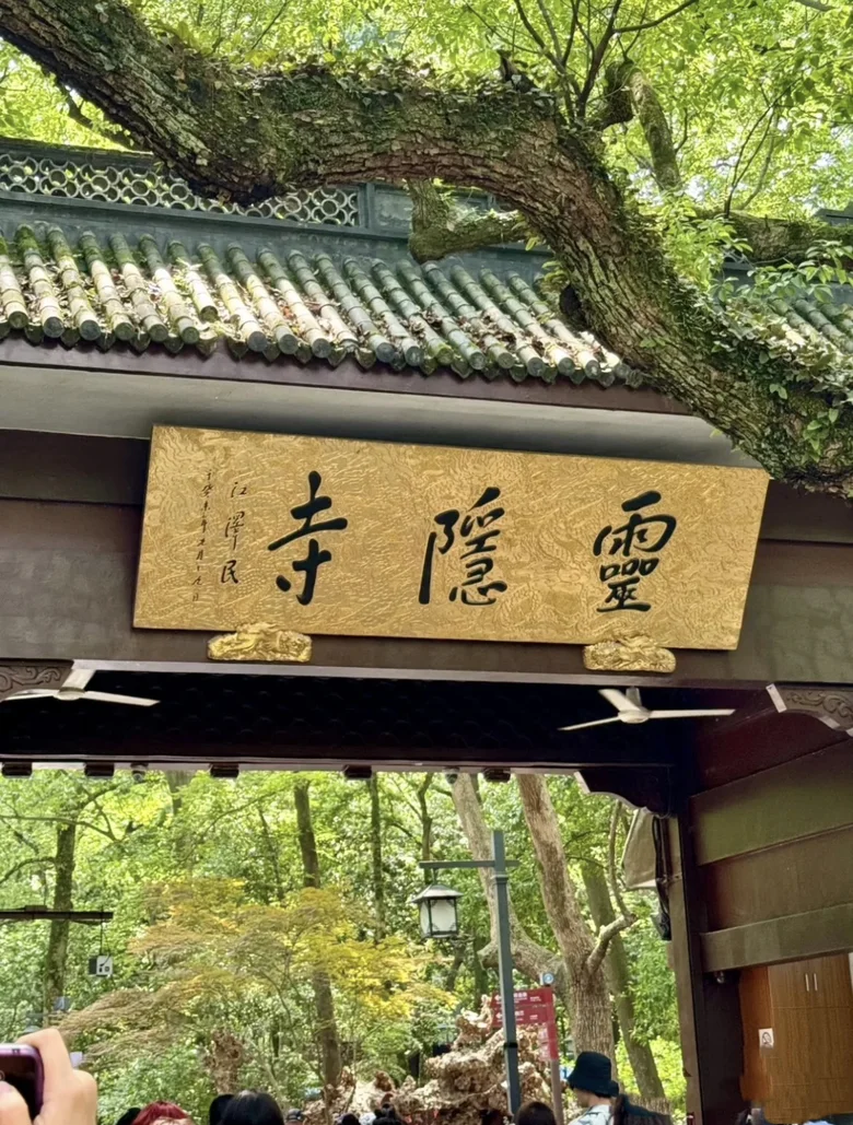 第一站是灵隐寺。我将车停在景区附近的停车场,步行进入飞来峰景区。灵隐寺始建于东晋,是中国最早的佛教寺院之一。沿着青石小径缓步而上,飞来峰的石窟造像静谧庄严,佛像在青苔与树影中若隐若现,仿佛穿越千年。进入灵隐寺主殿,香火缭绕,钟声悠扬。我在大雄宝殿前合十祈愿,内心无比宁静。寺中游人不多,偶尔有僧人缓步而过,整个氛围庄重而安详。